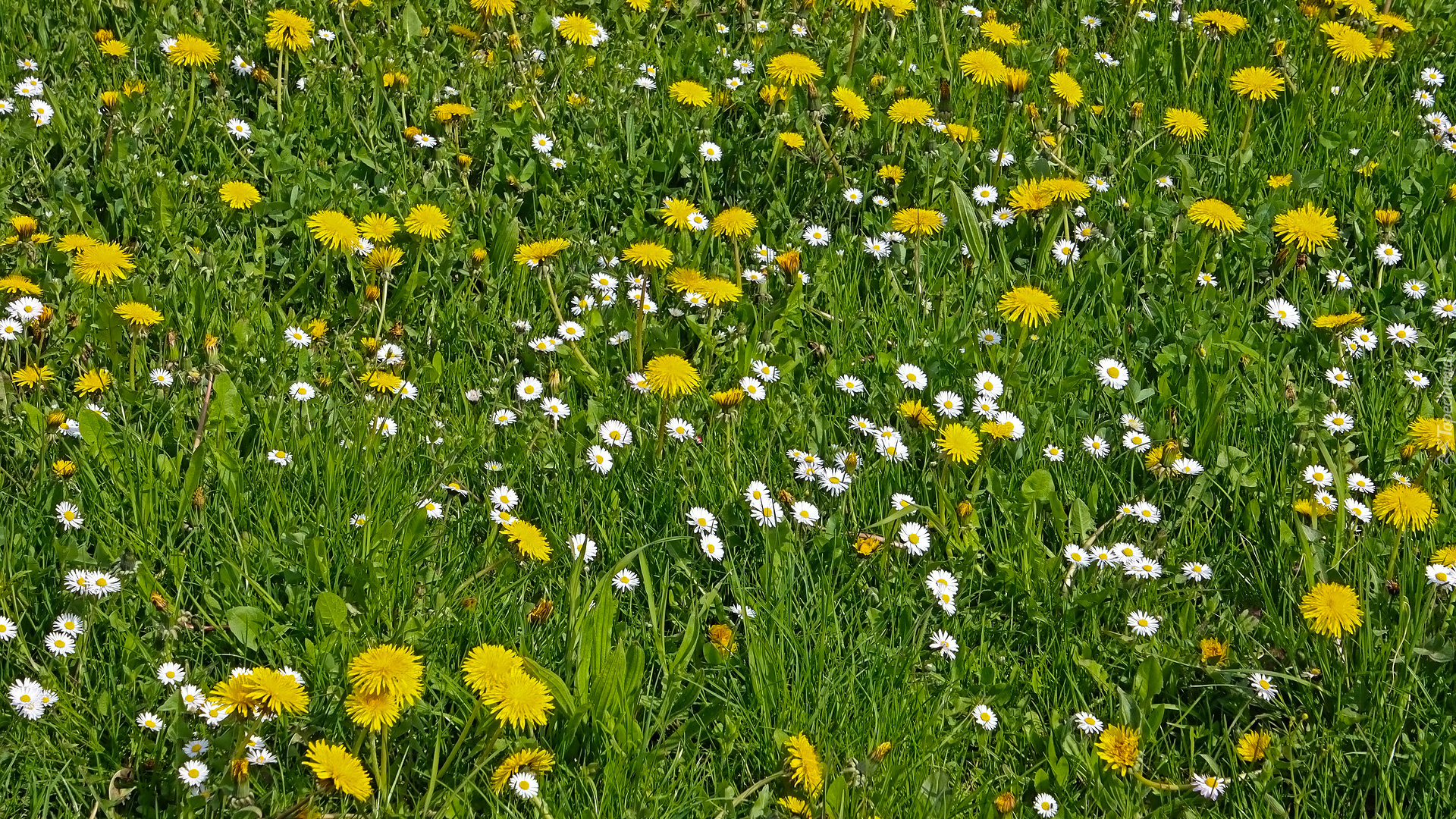 Edytor tapety: Mniszek pospolity i stokrotki na łące