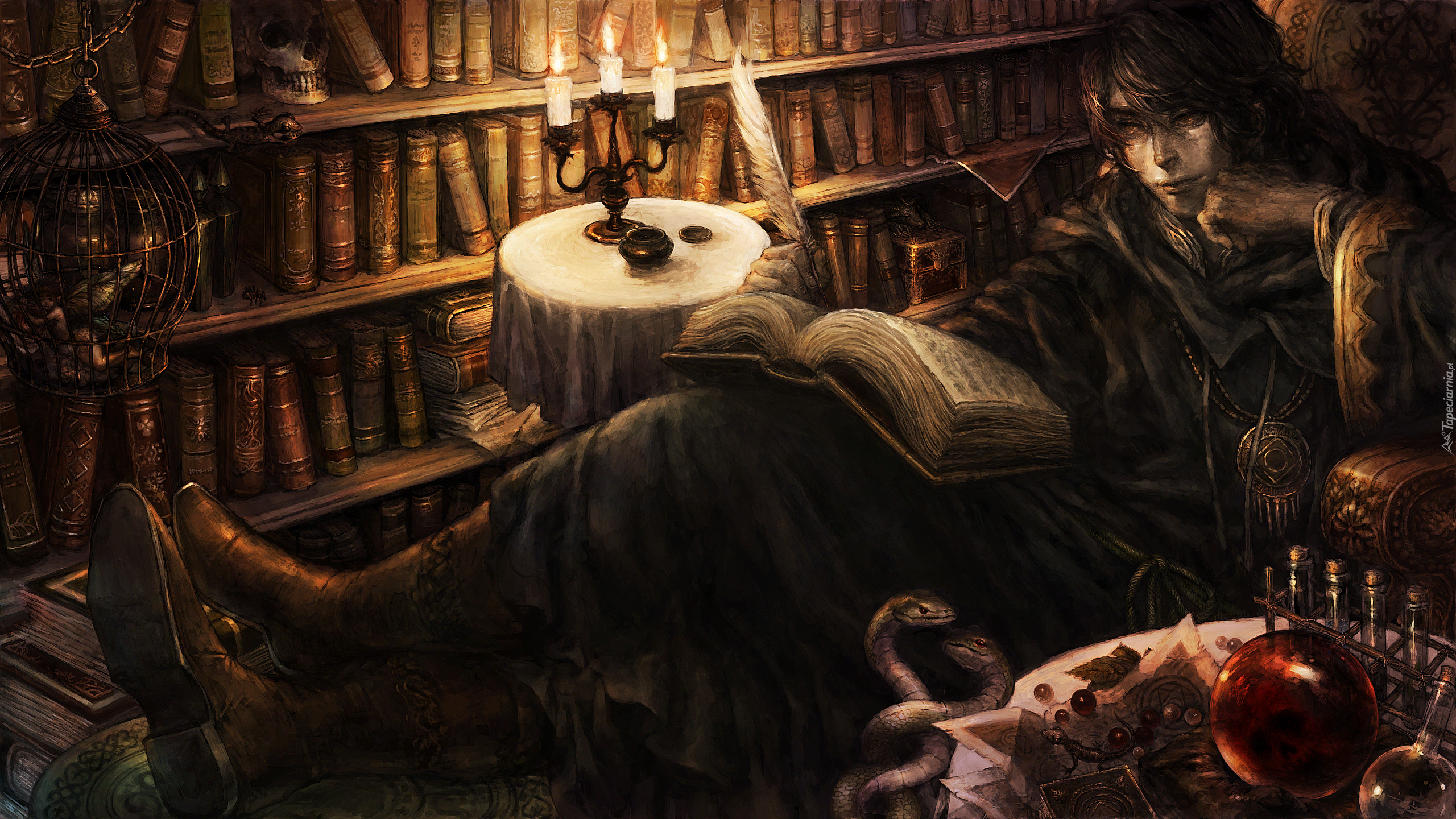 Edytor tapety: Mężczyzna z książką w bibliotece