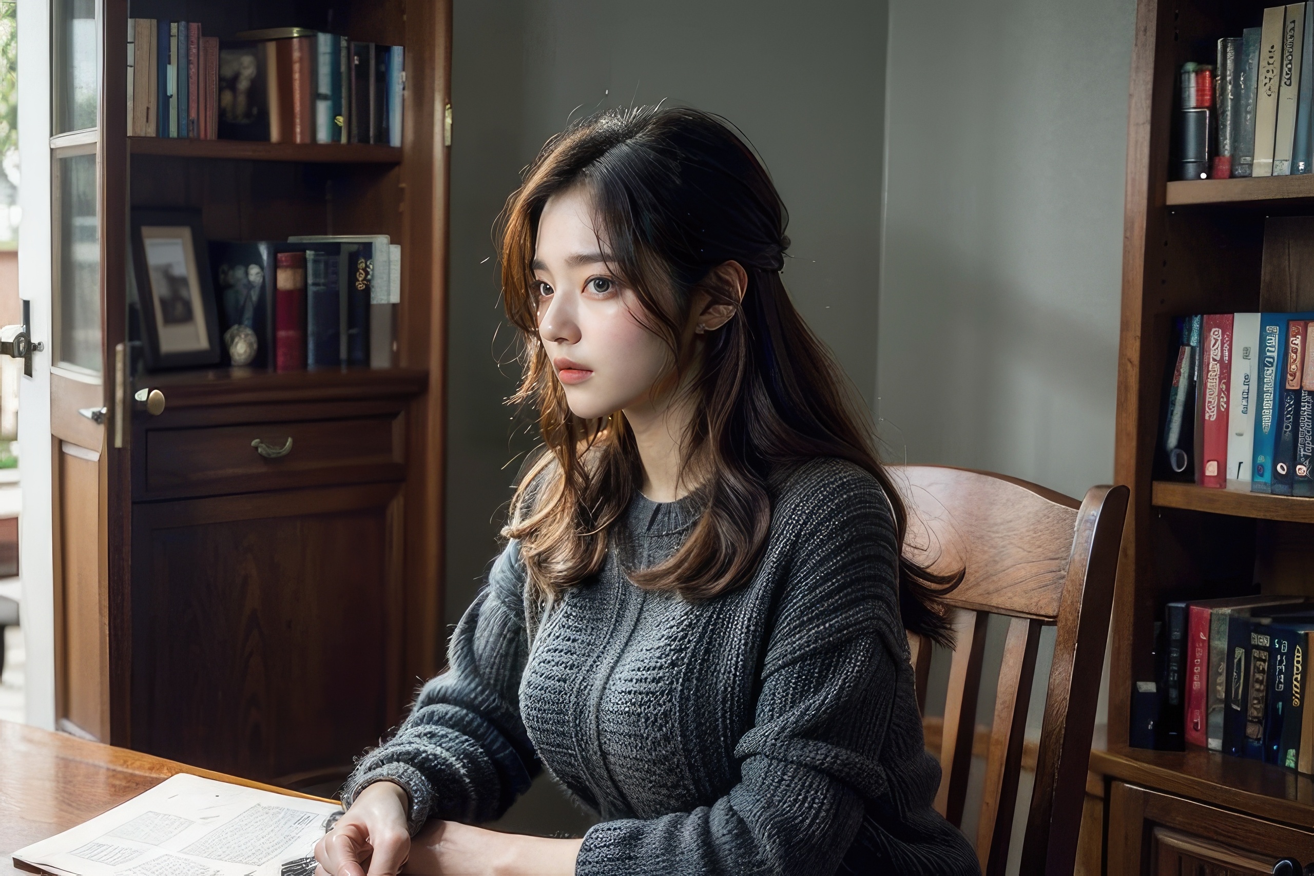 Edytor tapety: Azjatka w szarym swetrze