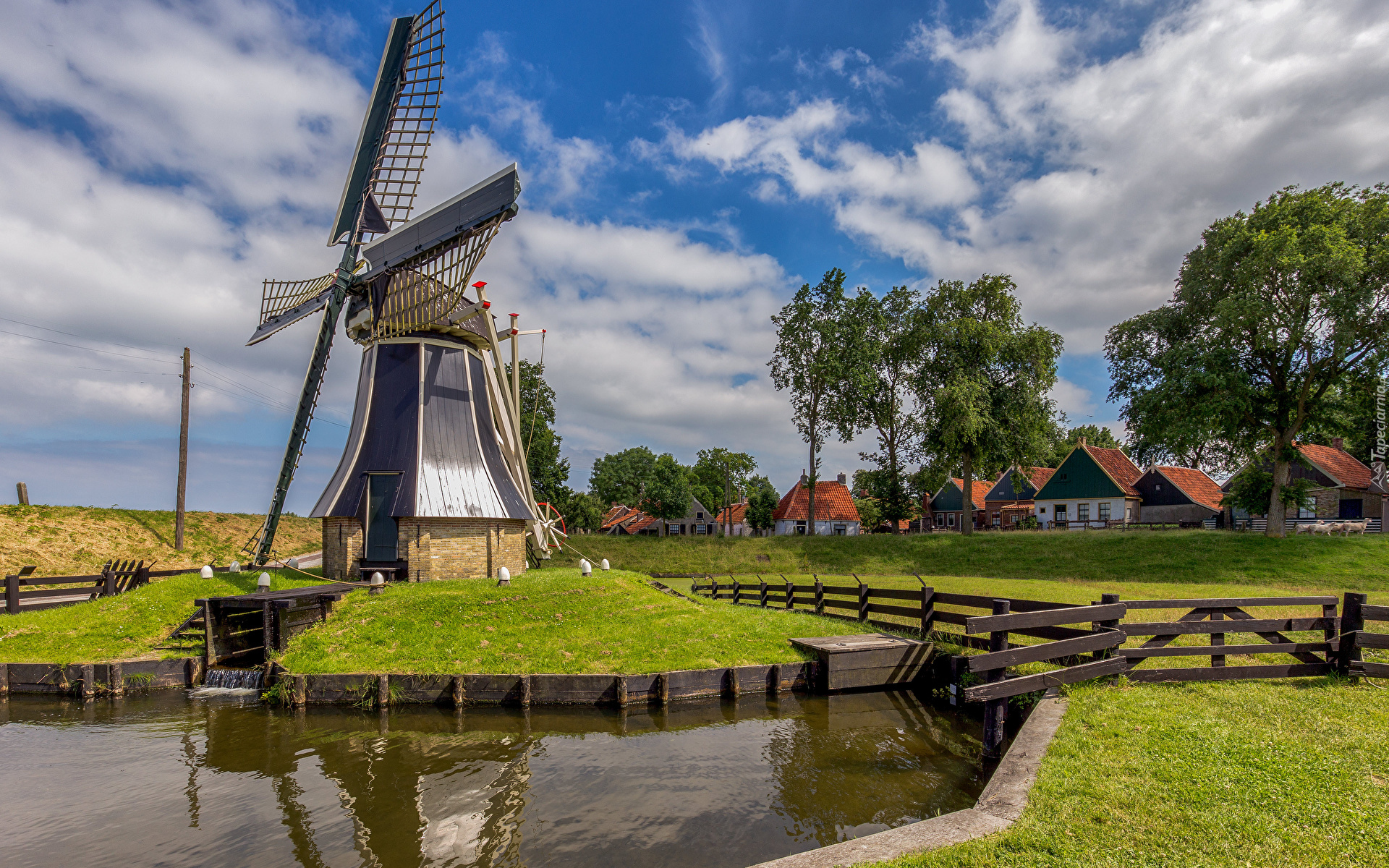 Edytor tapety: Wiatrak przy kanale wodnym w Enkhuizen