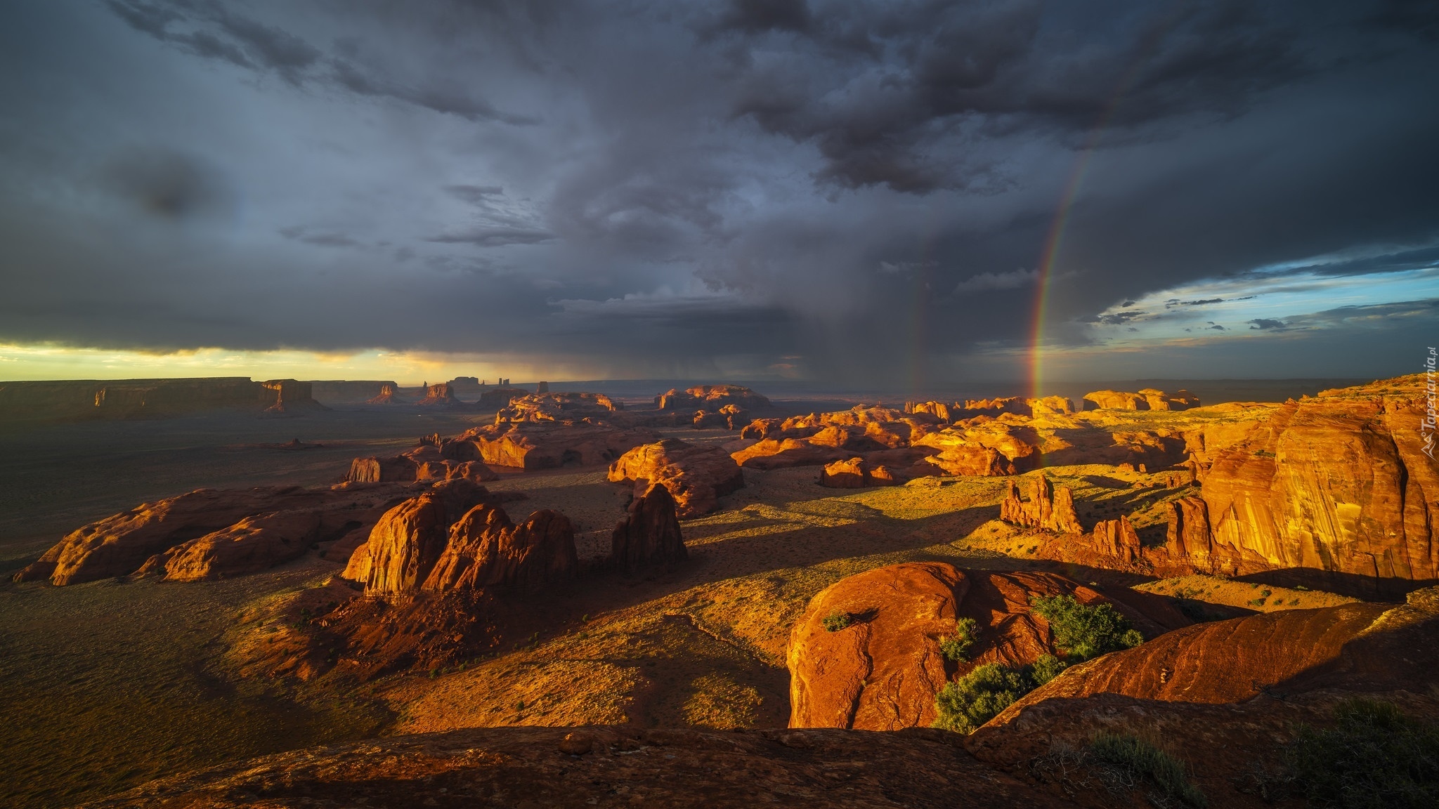 Edytor tapety: Ciemne chmury nad Monument Valley w Arizonie