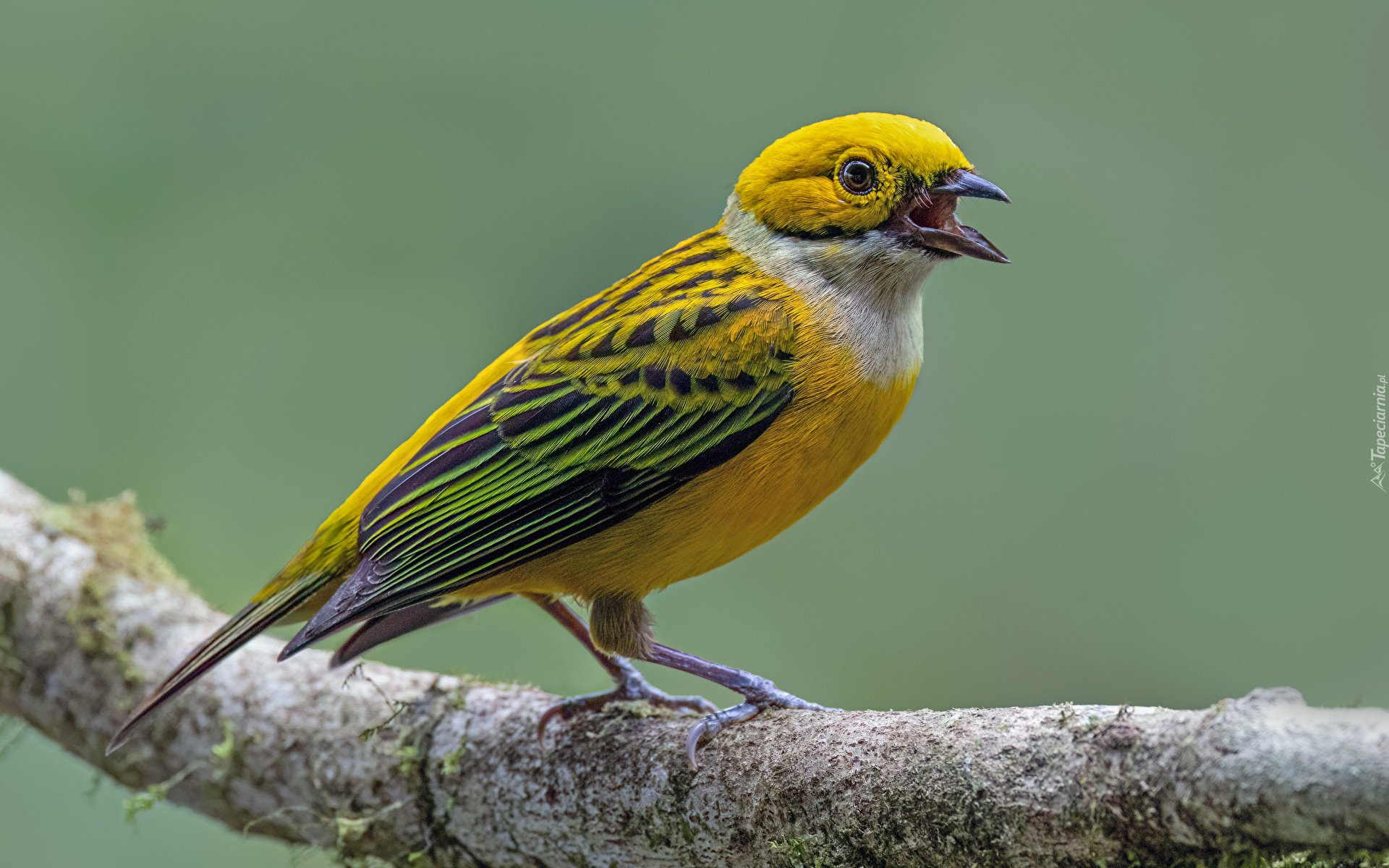Edytor tapety: Tangarka cytrynowa na gałęzi