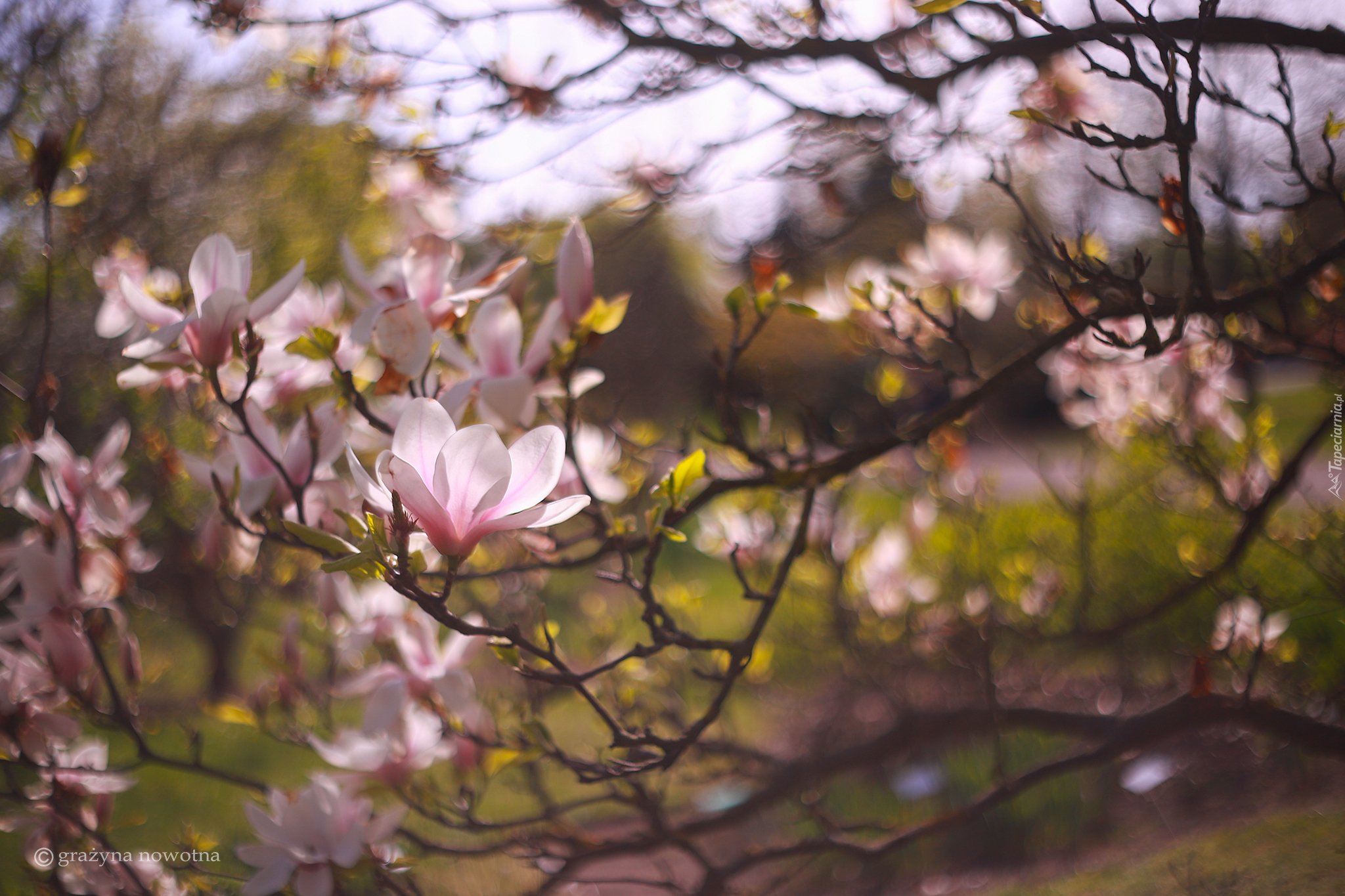 Edytor tapety: Krzew różowej magnolii w rozmyciu