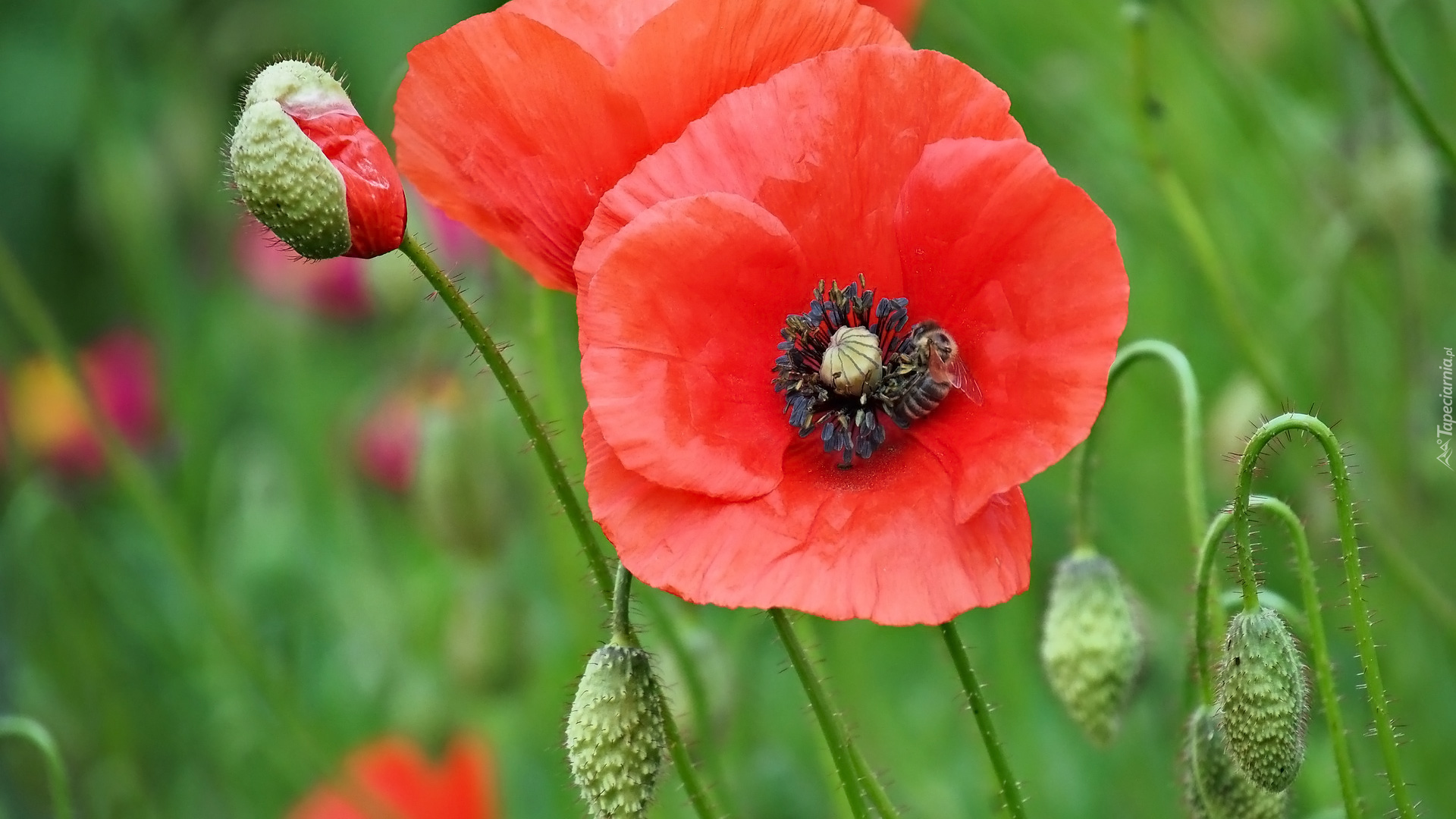 Edytor tapety: Dwa czerwone maki i pąki