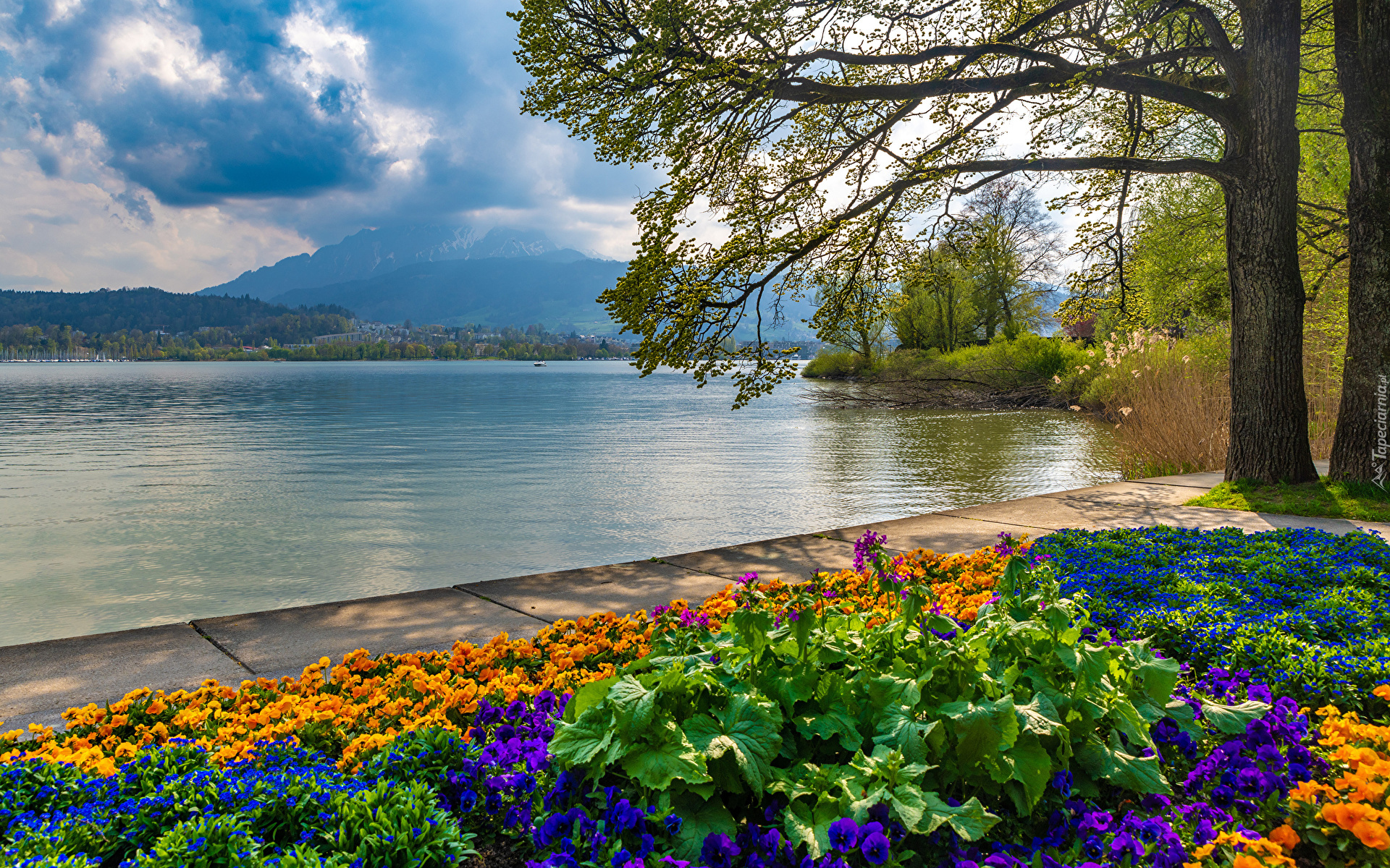 Edytor tapety: Kolorowa rabata nad jeziorem