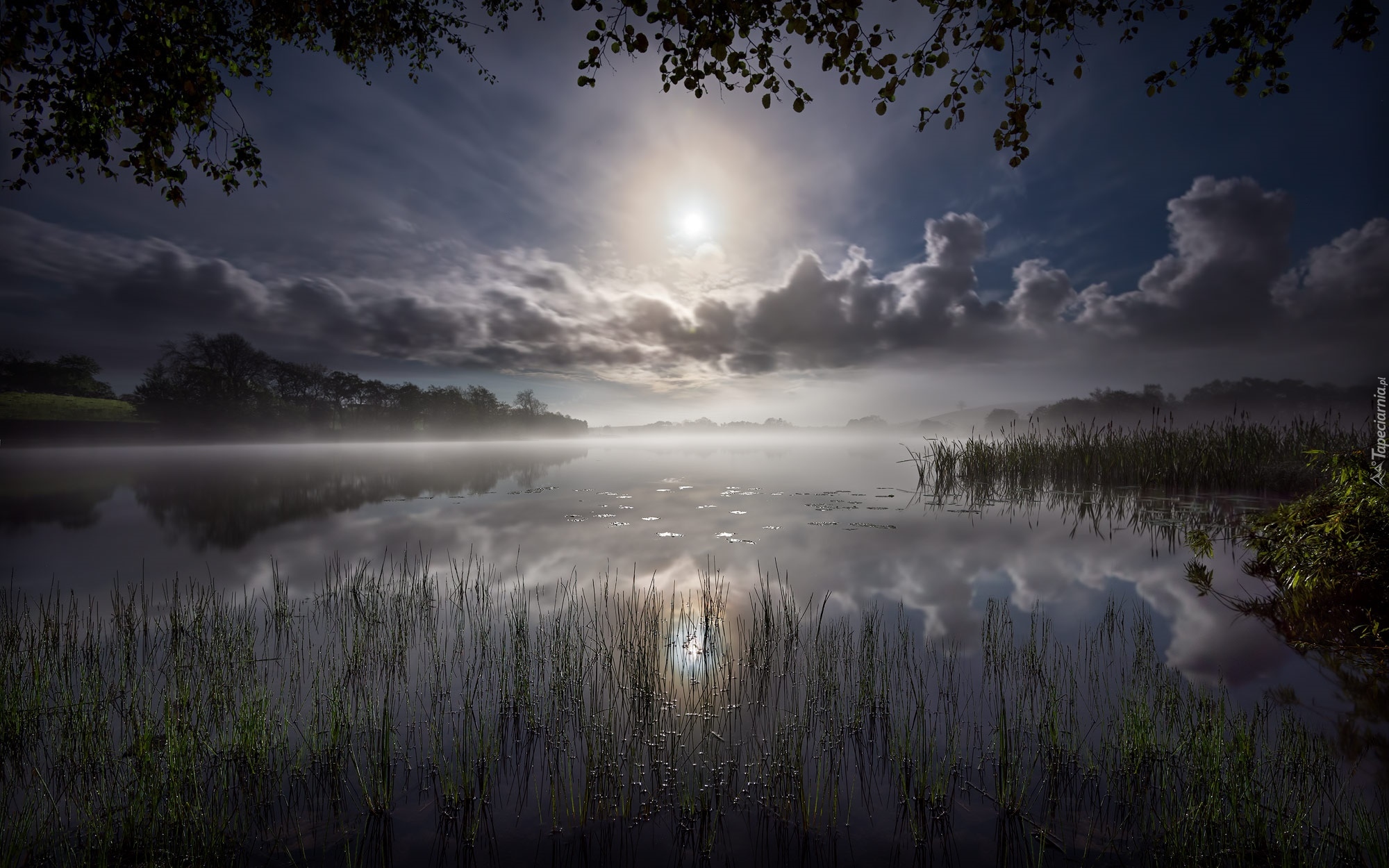 Edytor tapety: Szuwary w jeziorze w świetle księżyca