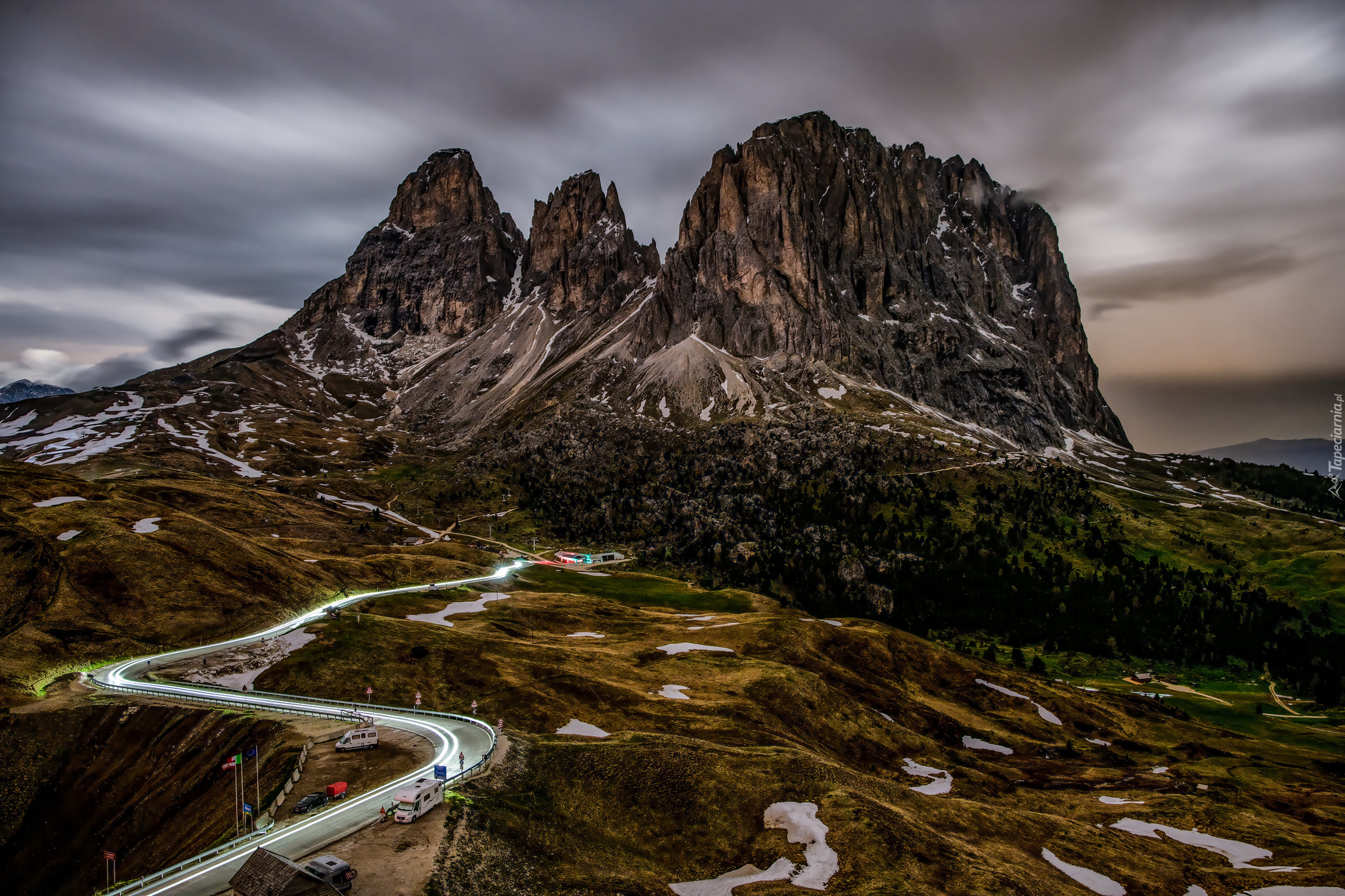 Edytor tapety: Przełęcz górska Sella Pass w Dolomitach
