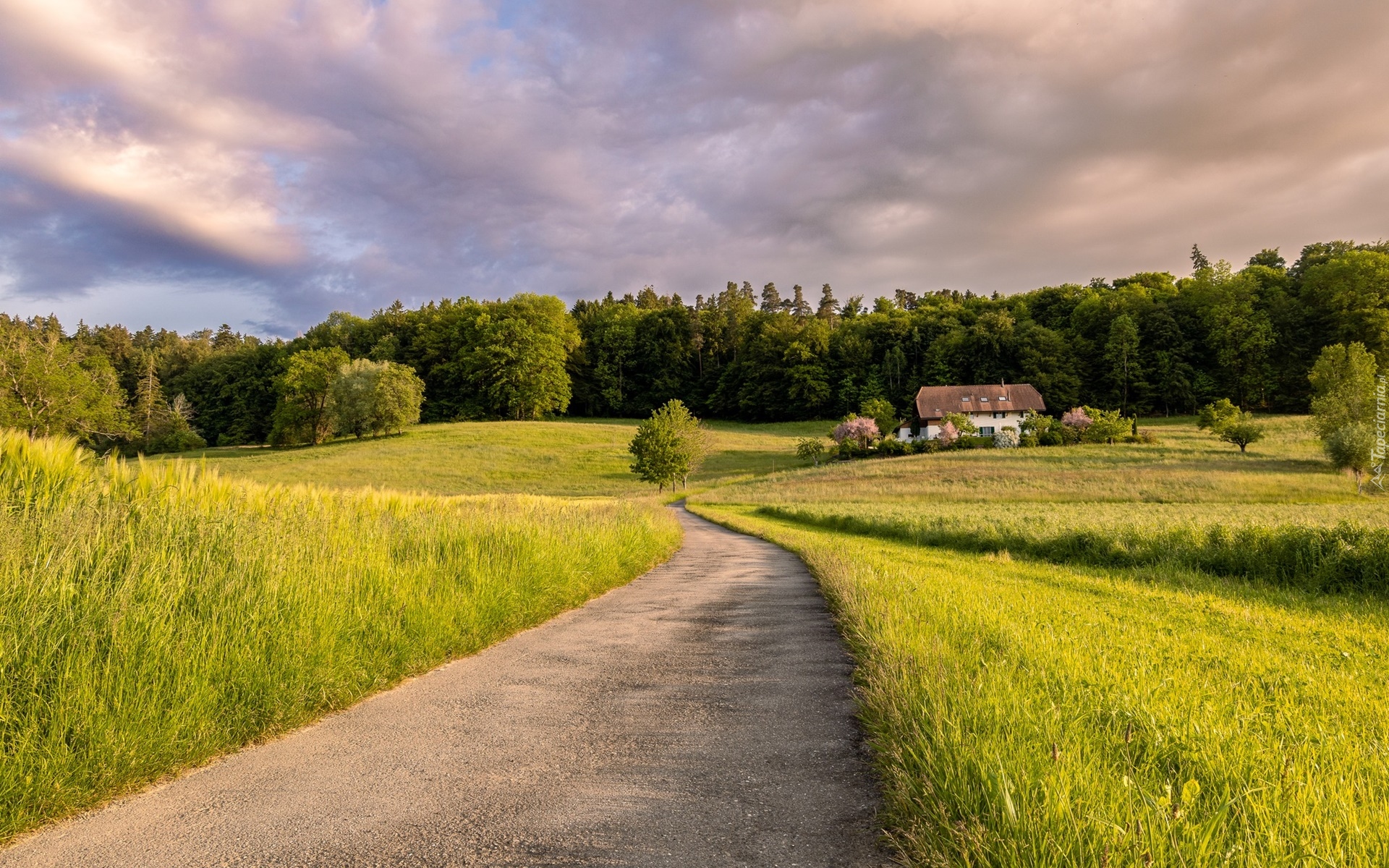 Edytor tapety: Polna droga i dom pod lasem