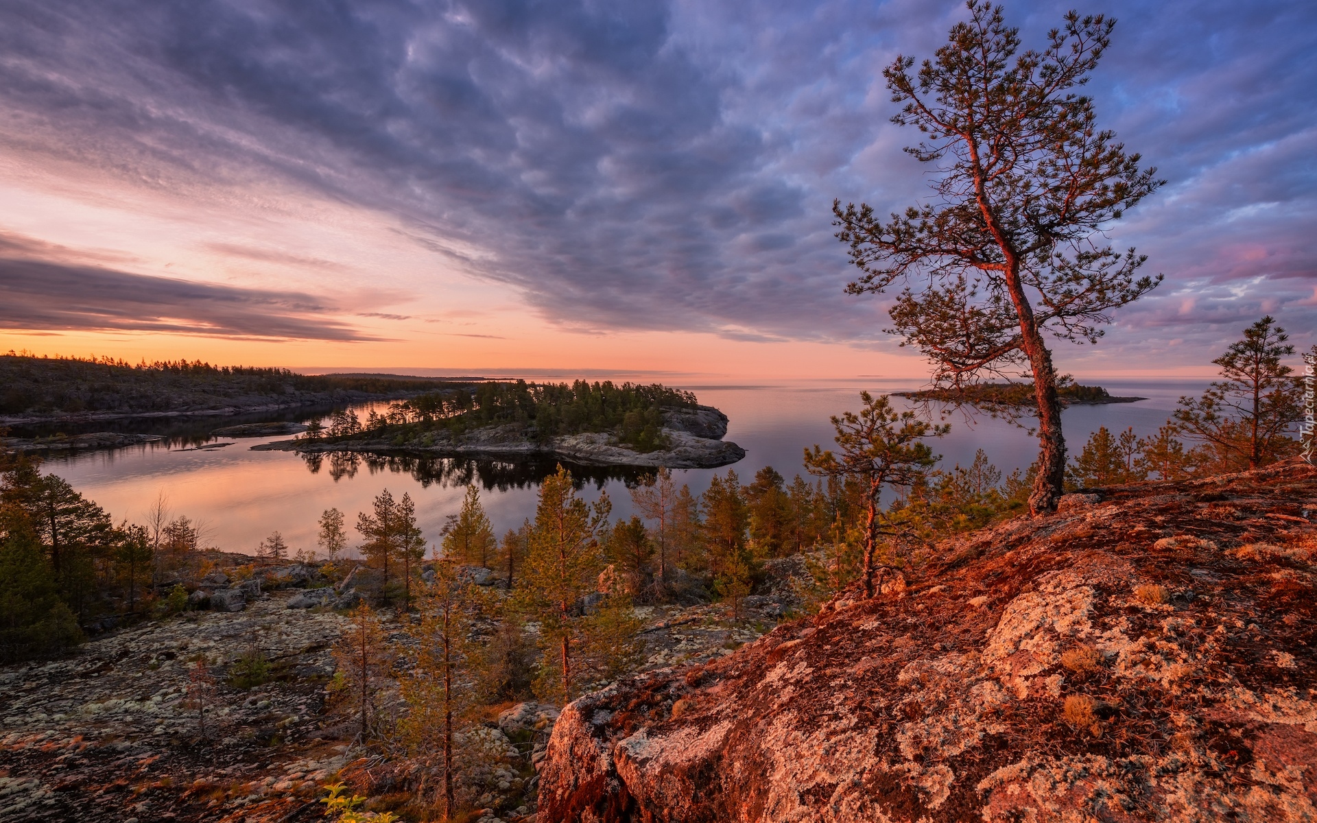Edytor tapety: Wysepka na jeziorze Ładoga pod pochmurnym niebem