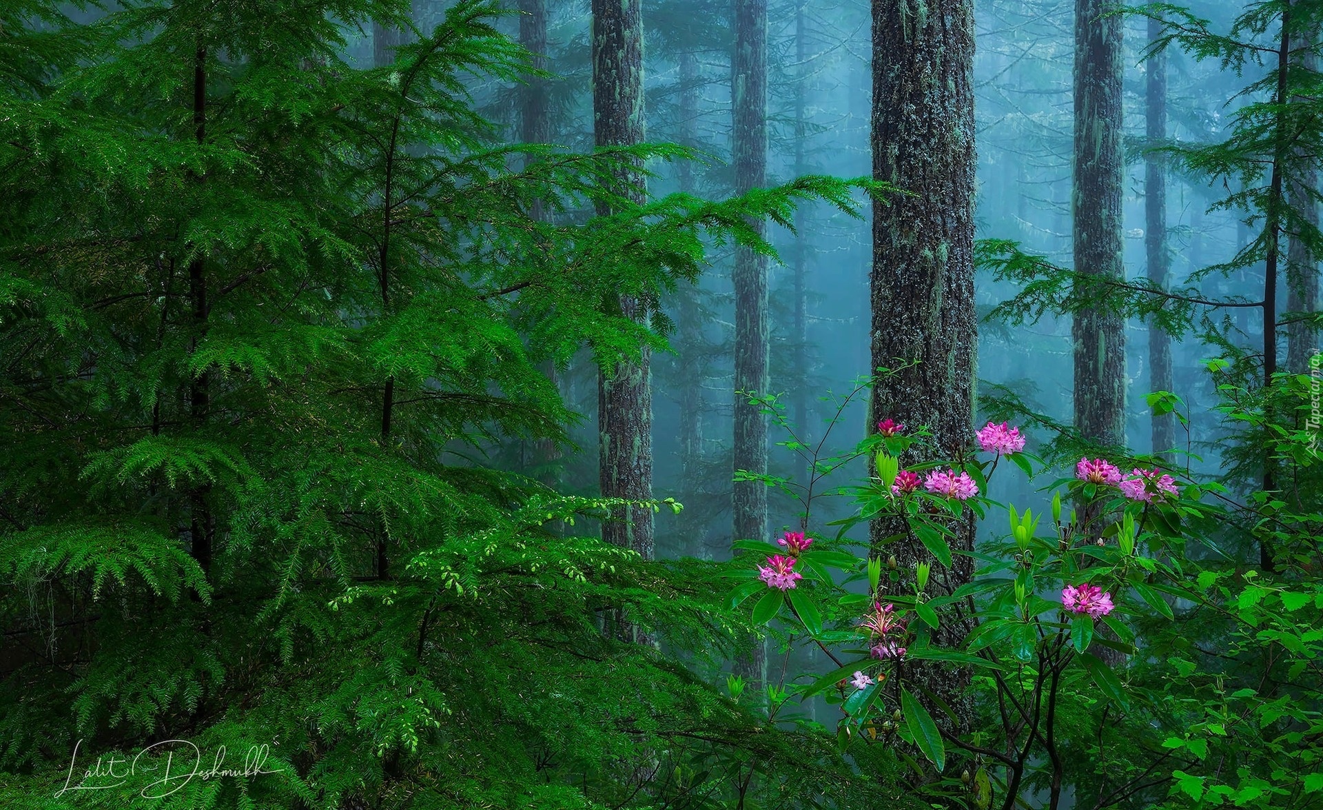 Edytor tapety: Różaneczniki przy drzewie