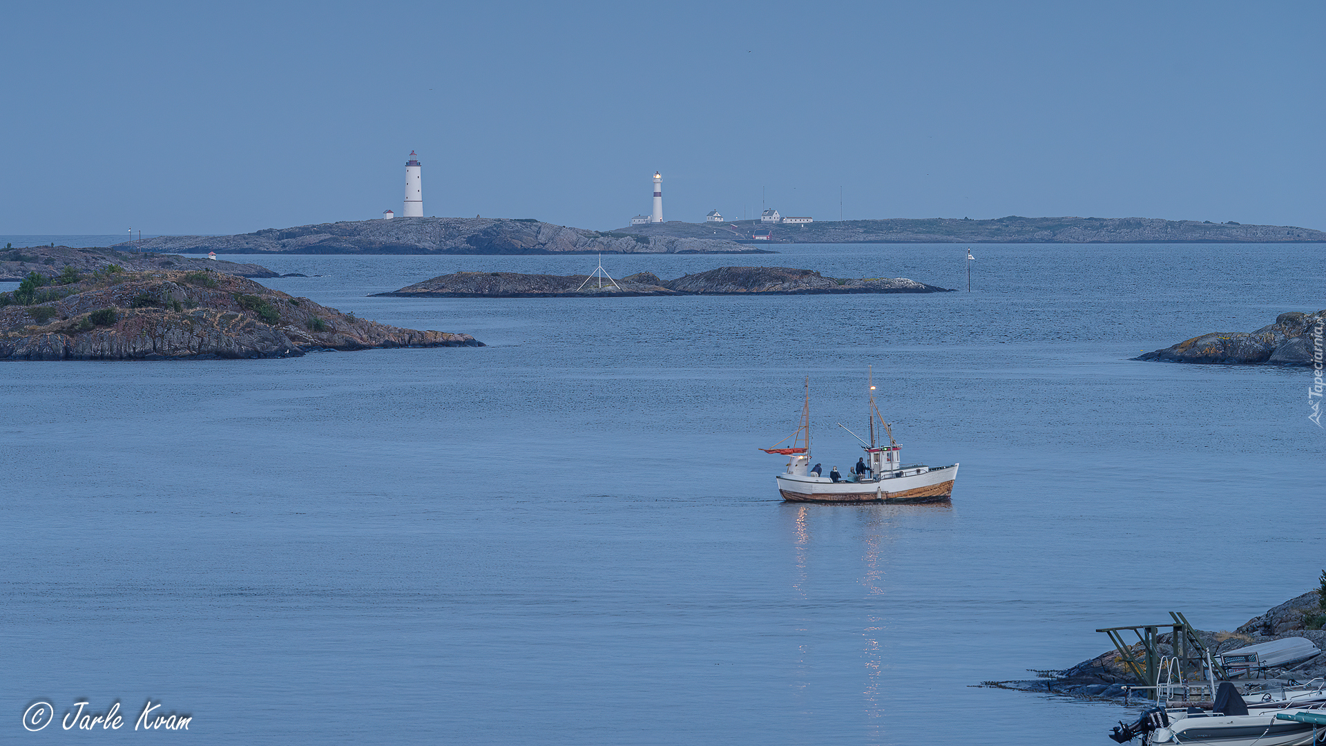 Edytor tapety: Kuter rybacki i latarnie morskie w oddali