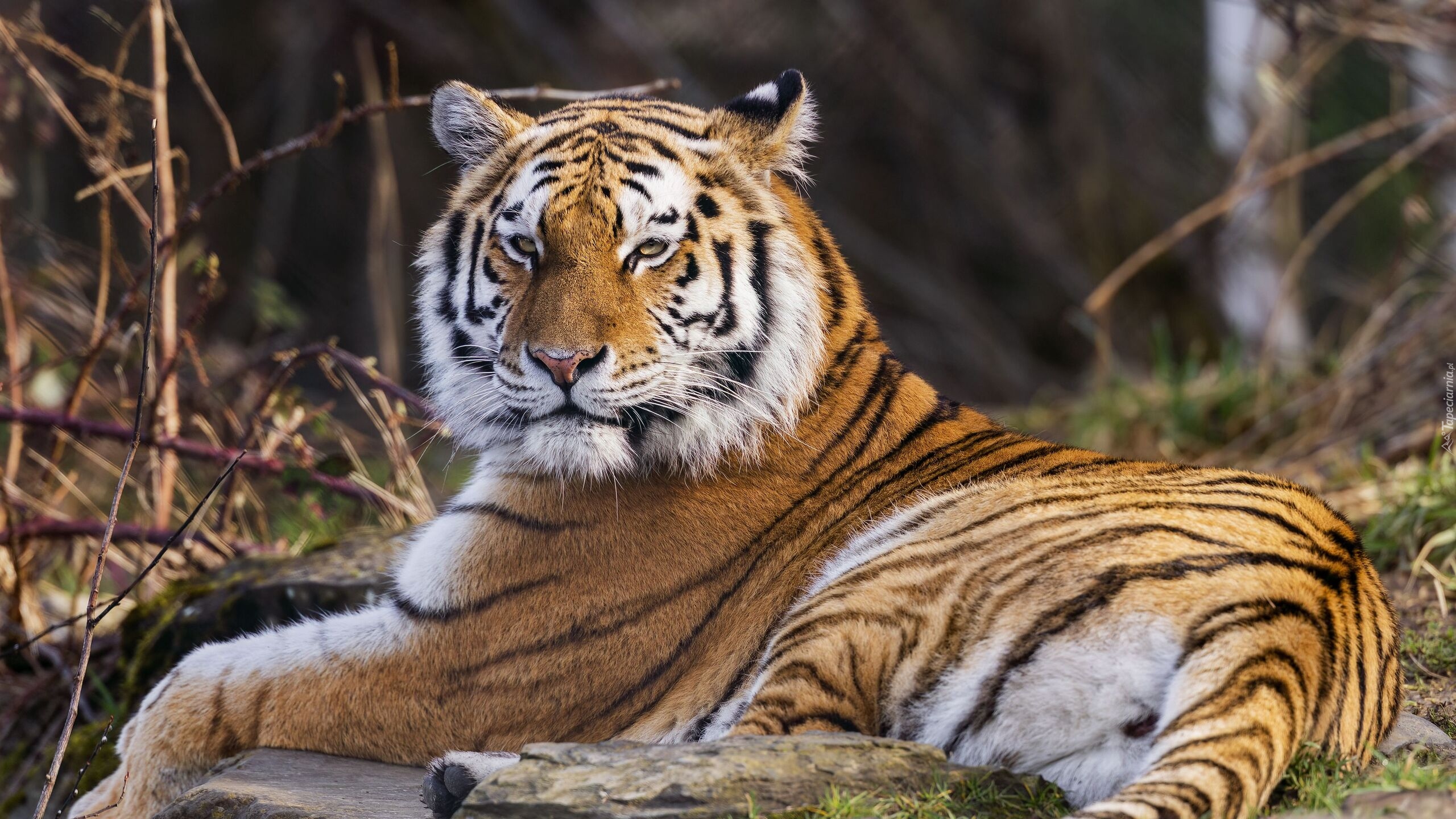 Edytor tapety: Tygrys odpoczywający na tle drzew