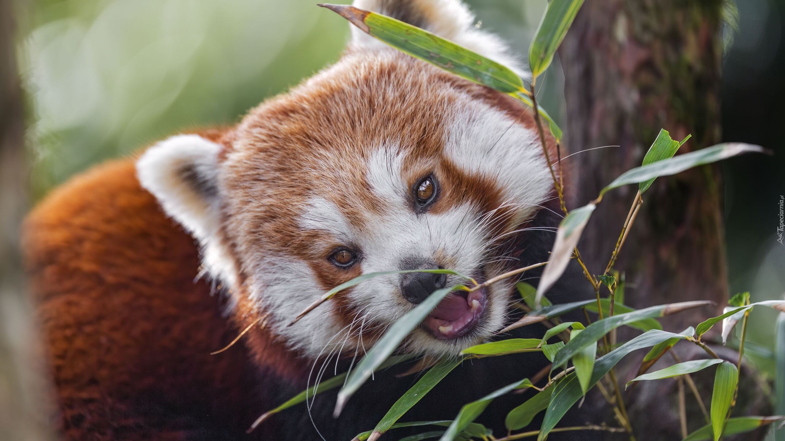 Edytor tapety: Pandka ruda jedząca liście