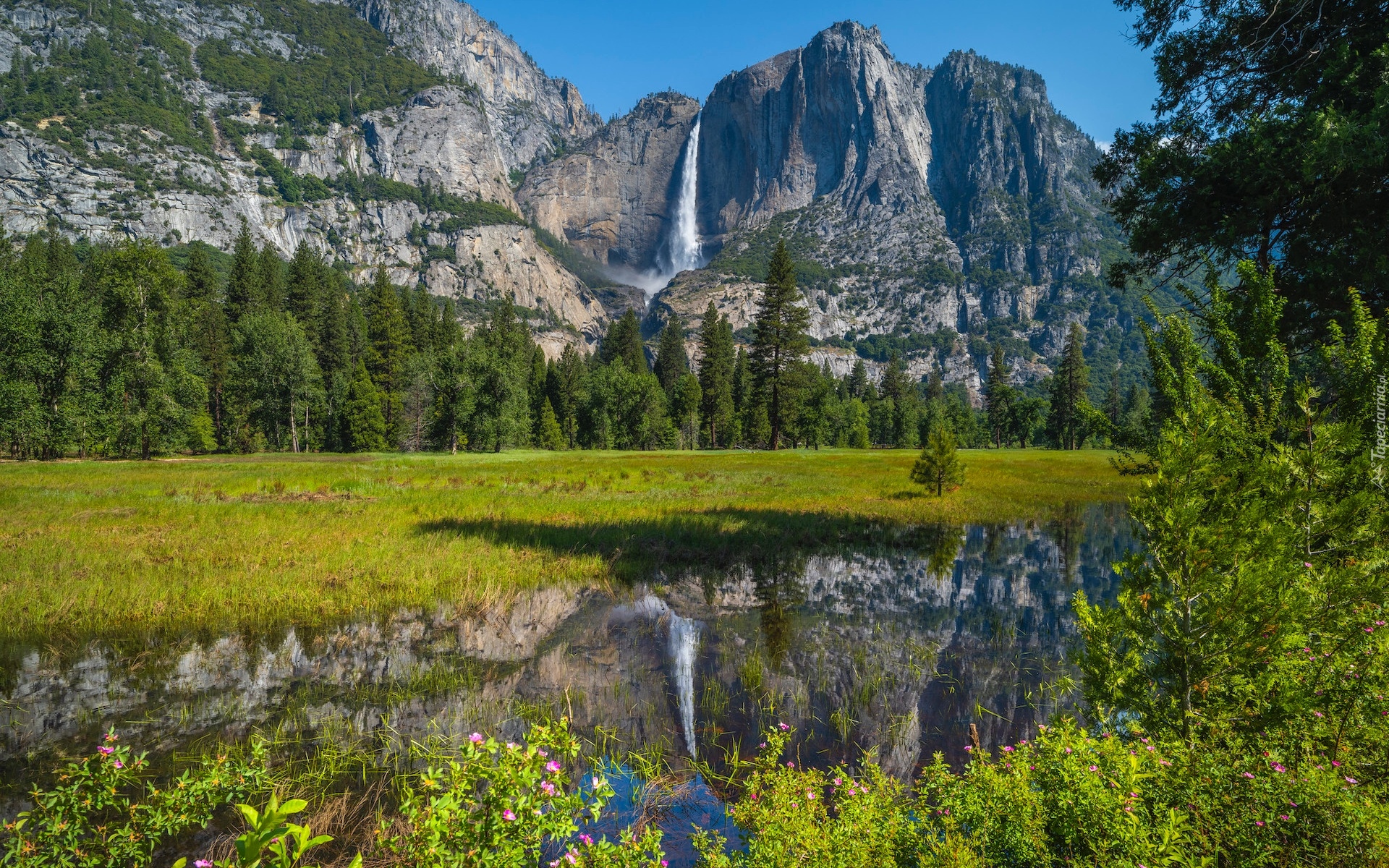 Edytor tapety: Widok na wodospad w Parku Narodowym Yosemite