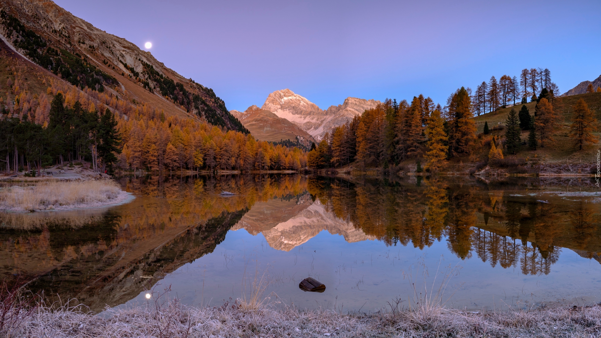 Edytor tapety: Księżyc nad górskim jeziorem