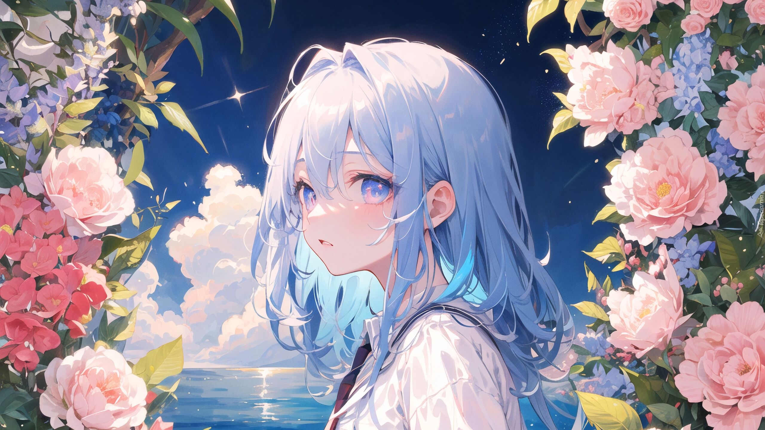 Edytor tapety: Niebieskowłosa dziewczyna w anime