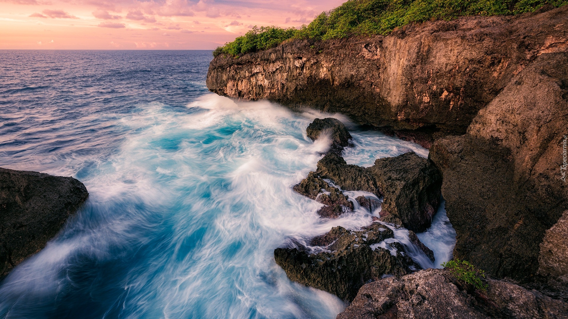 Edytor tapety: Fale na skałach i klifach nad morzem