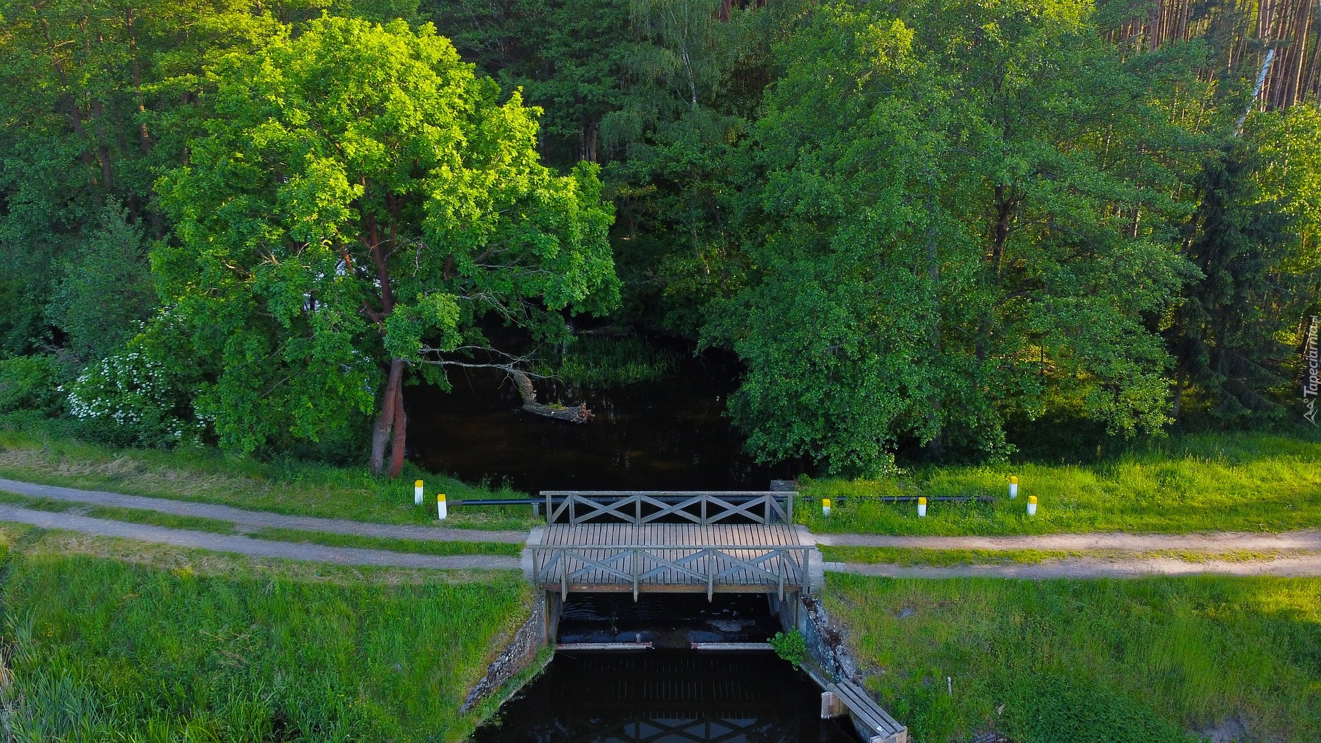 Edytor tapety: Mostek na rzeczce przy ścieżce pod lasem