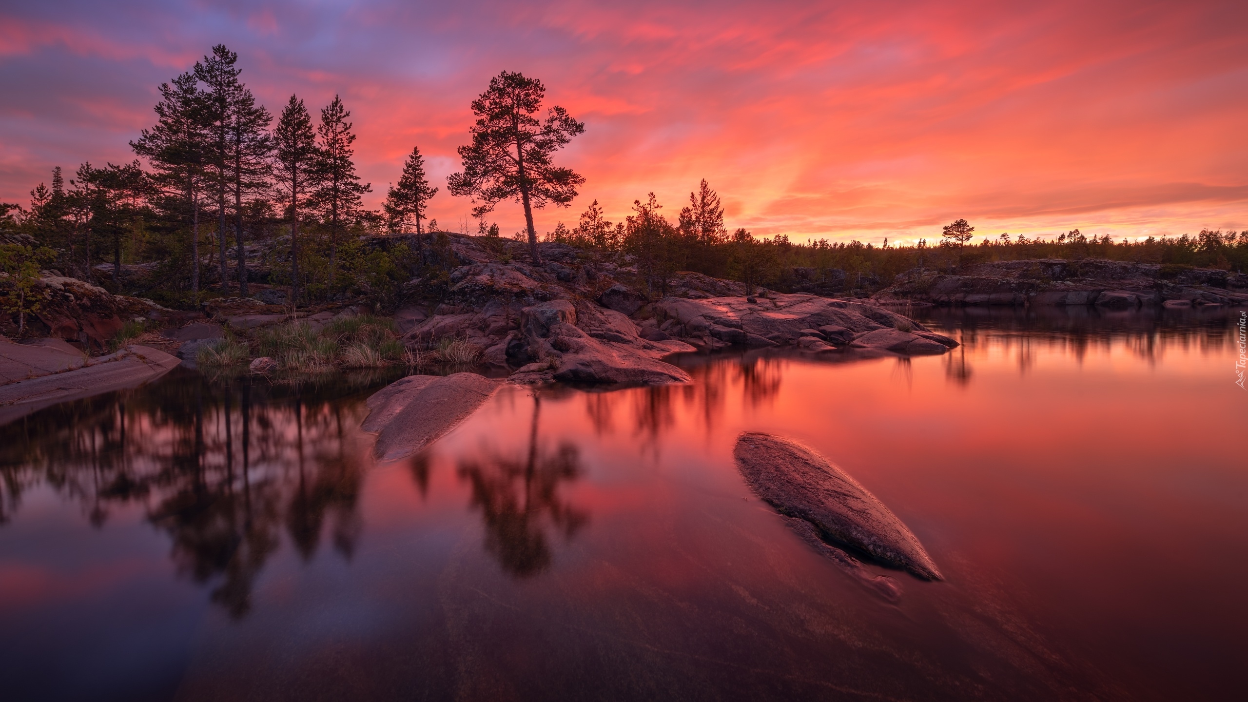 Edytor tapety: Malowniczy zachód słońca nad jeziorem Ładoga w Rosji