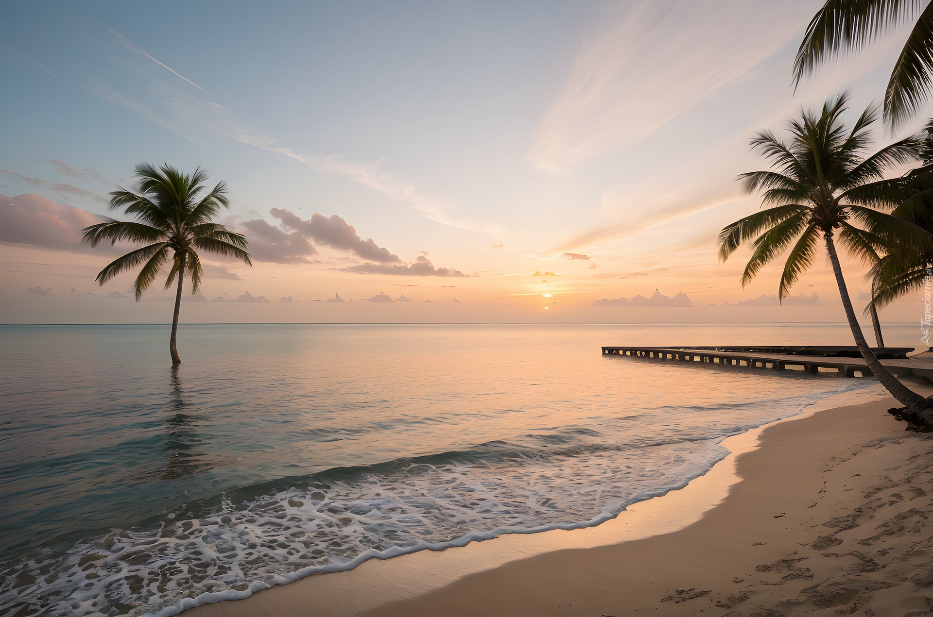 Edytor tapety: Palmy na plaży i zachód słońca nad morzem