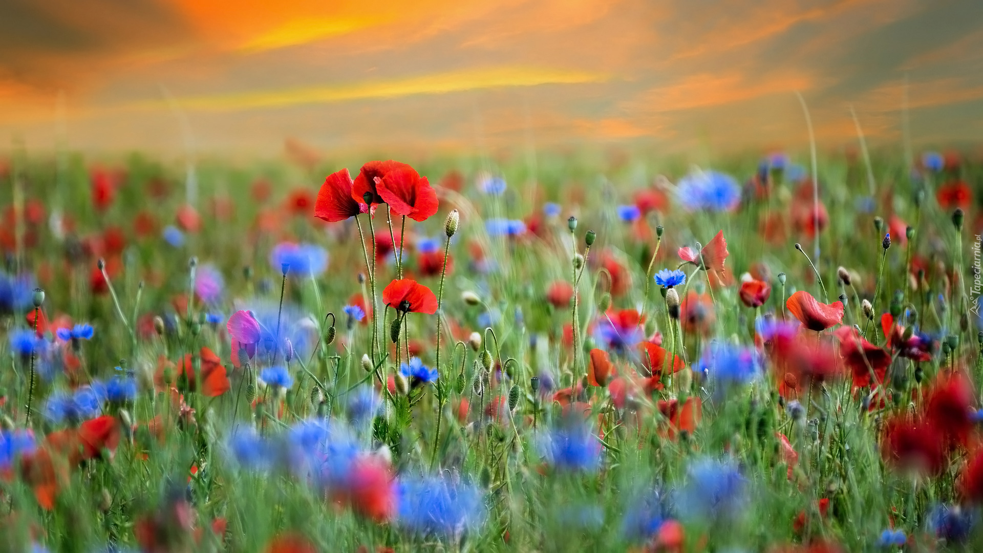 Edytor tapety: Kwitnące maki i chabry