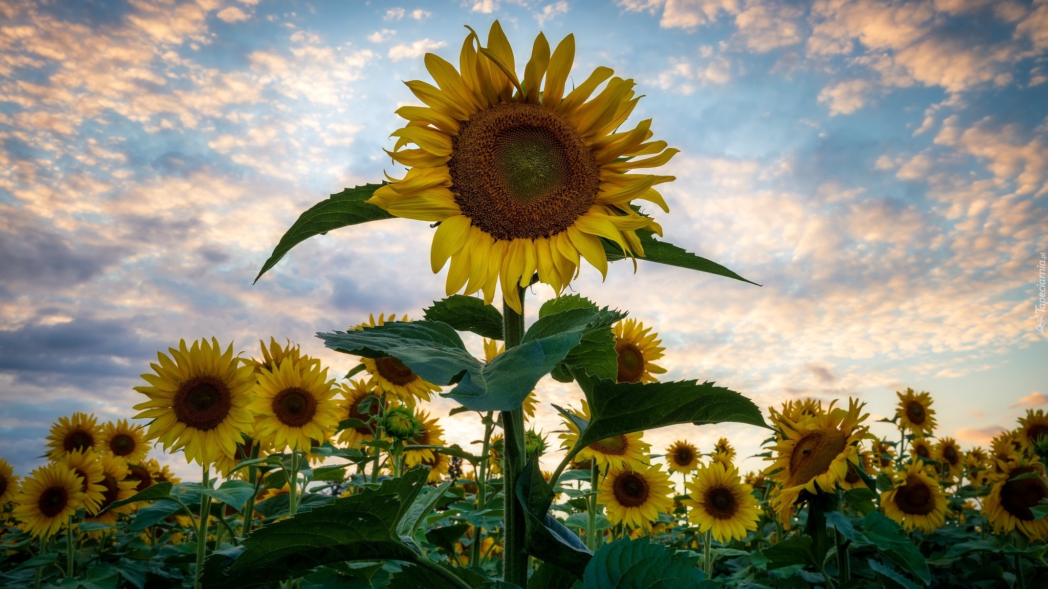 Edytor tapety: Kwitnące słoneczniki na tle nieba
