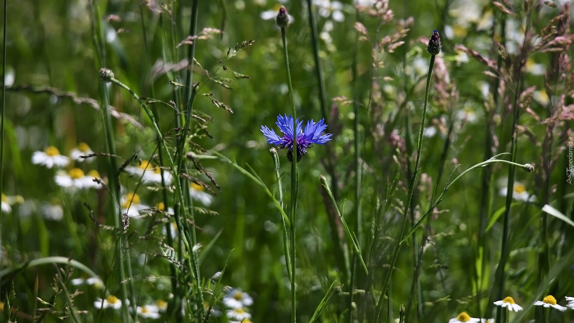 Edytor tapety: Chaber w trawie na rozmytym tle