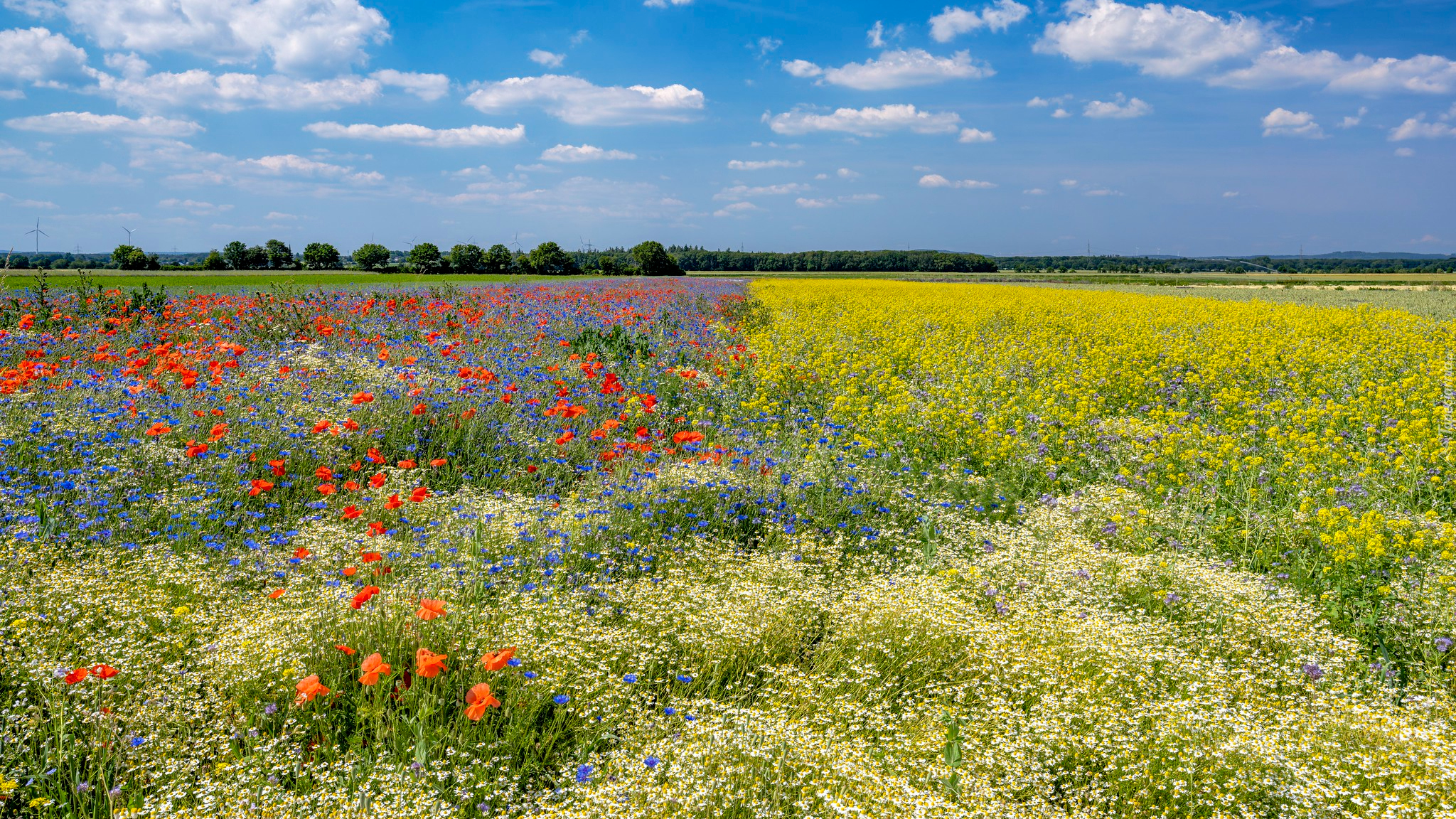 Edytor tapety: Maki i chabry obok pola rzepaku