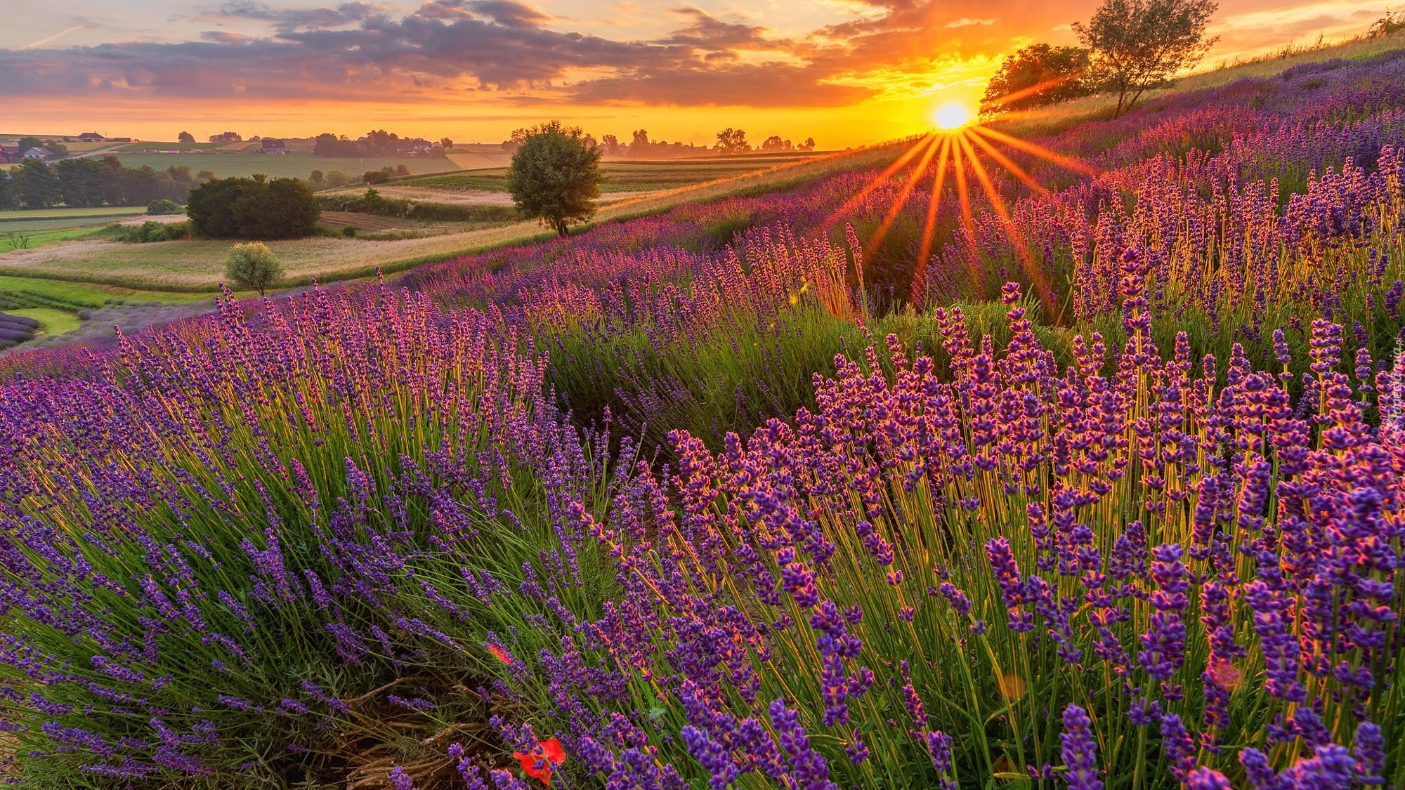 Edytor tapety: Lawenda na wzgórzu w promieniach słońca
