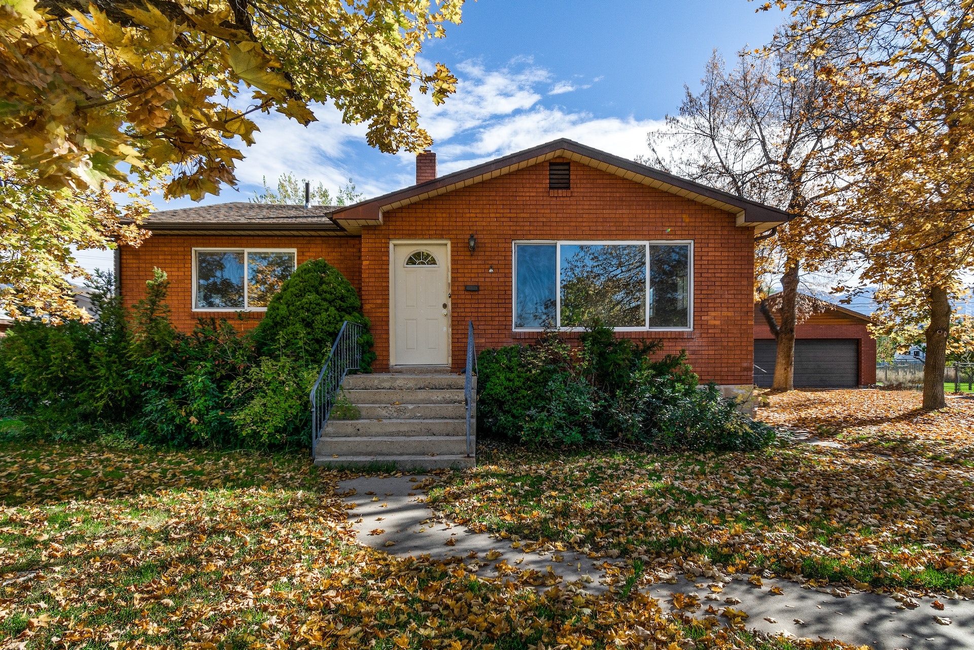 Edytor tapety: Jesienne drzewa przy domku z garażem