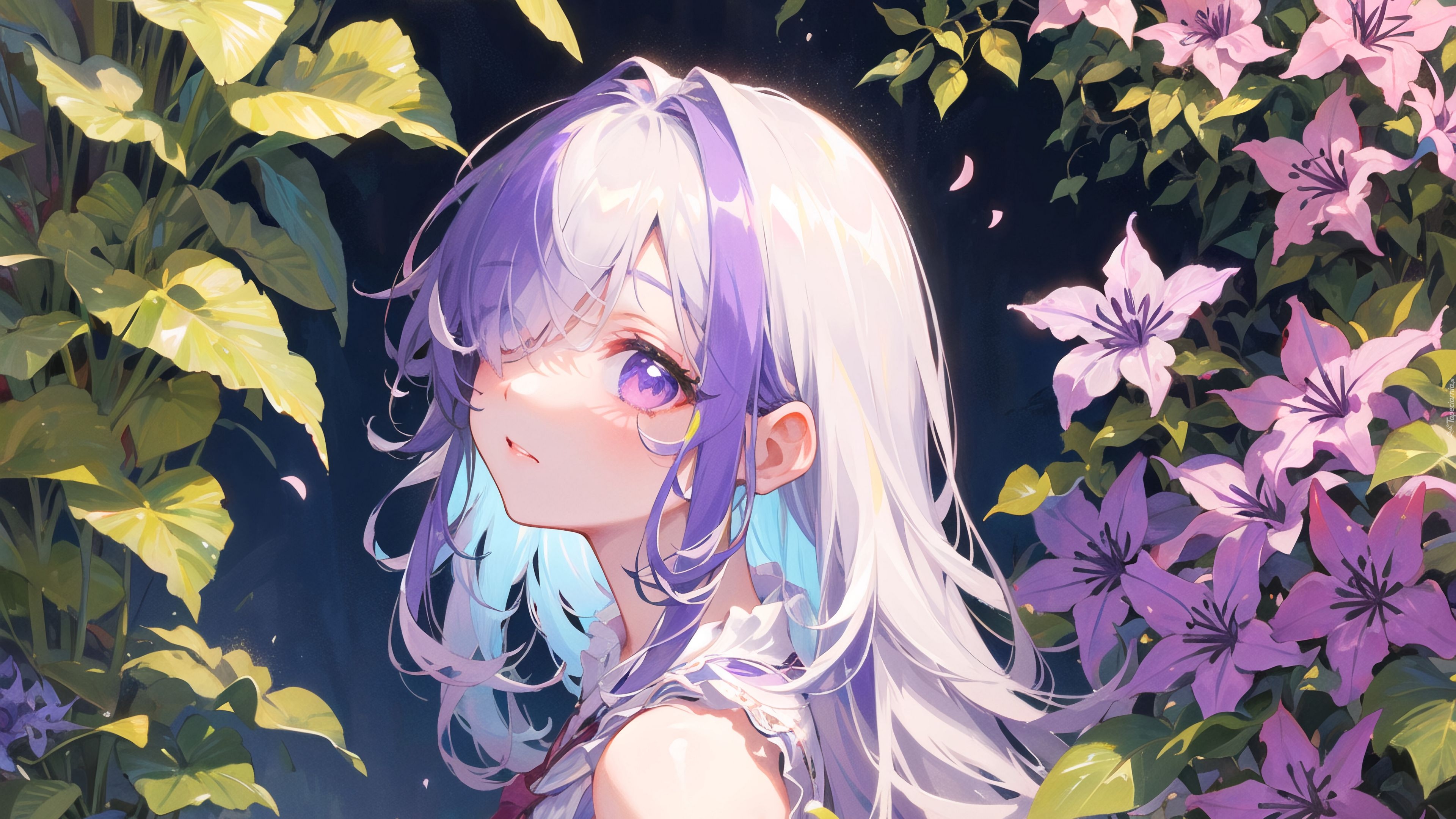 Edytor tapety: Dziewczyna obok kwiatów w anime