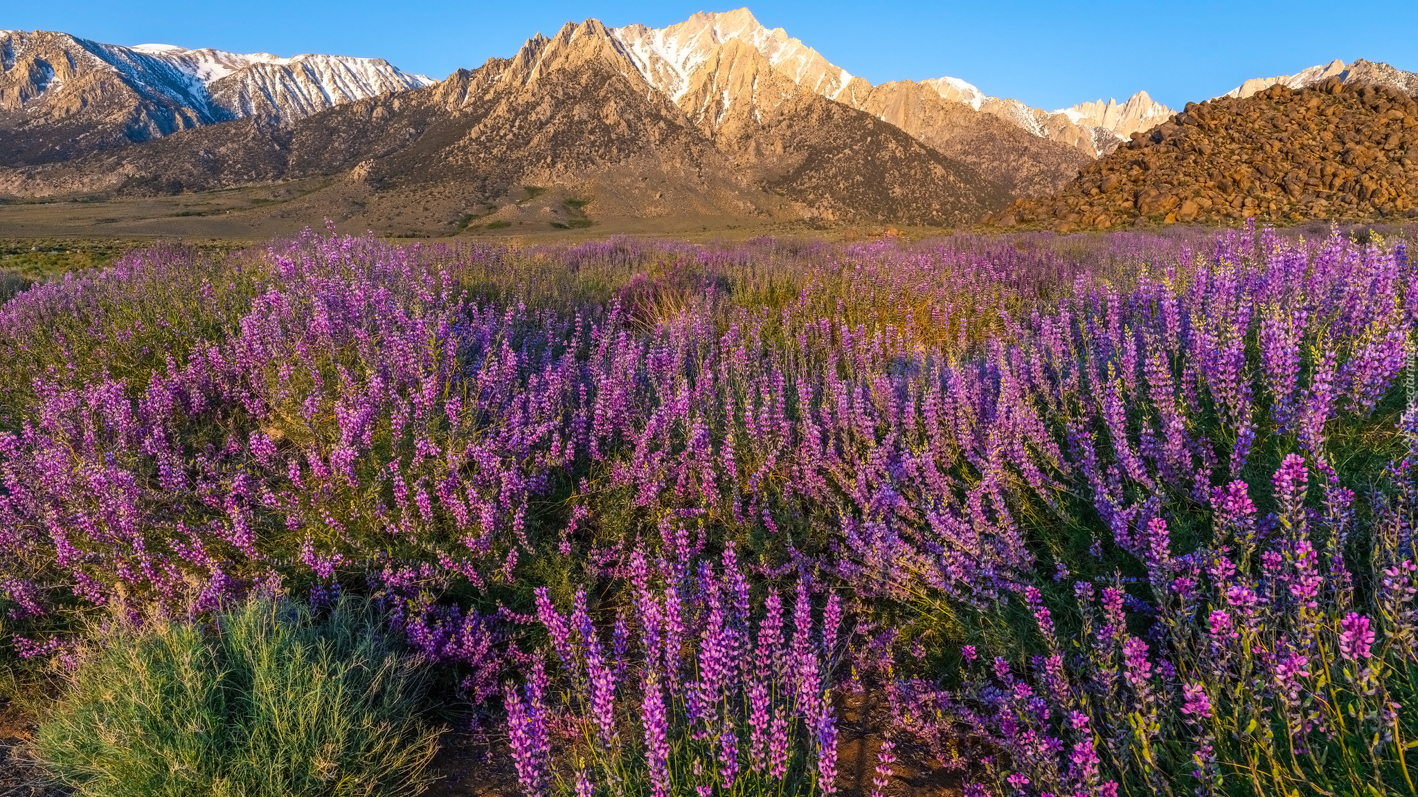 Edytor tapety: Pasmo górskie Alabama Hills i łubin na łące