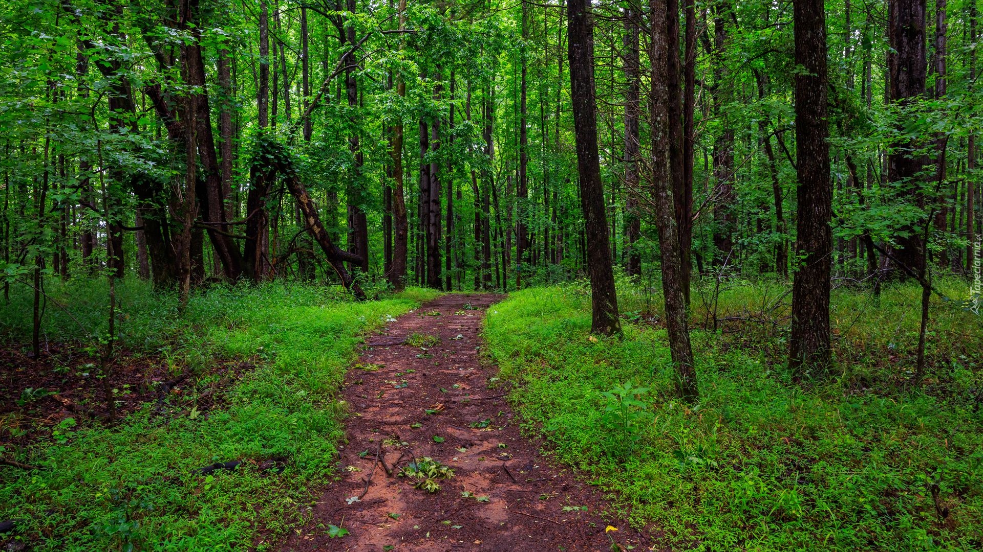 Edytor tapety: Ścieżka w zielonym lesie liściastym