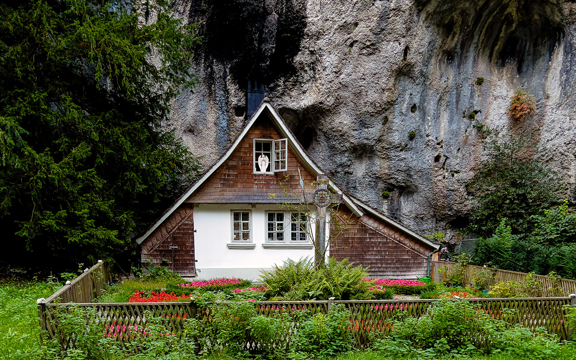 Edytor tapety: Ogrodzony ogródek przed domem