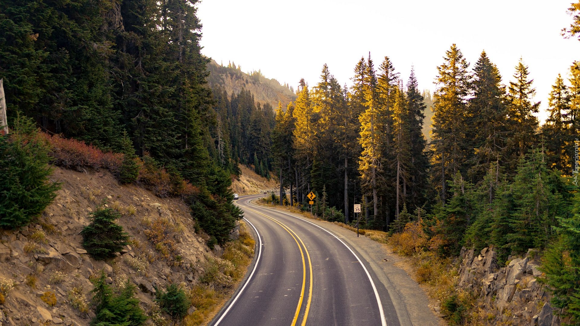 Edytor tapety: Kręta droga i drzewa na skarpie