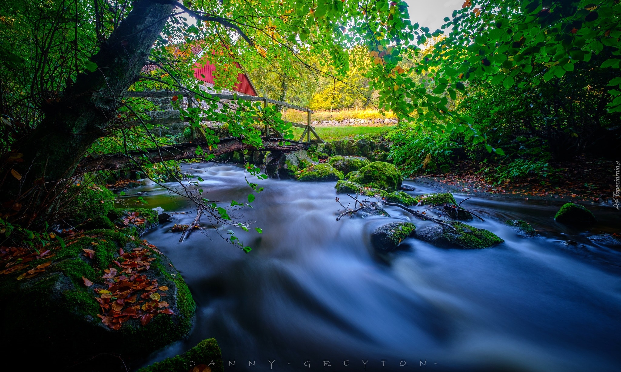 Edytor tapety: Dom za mostem nad rzeką