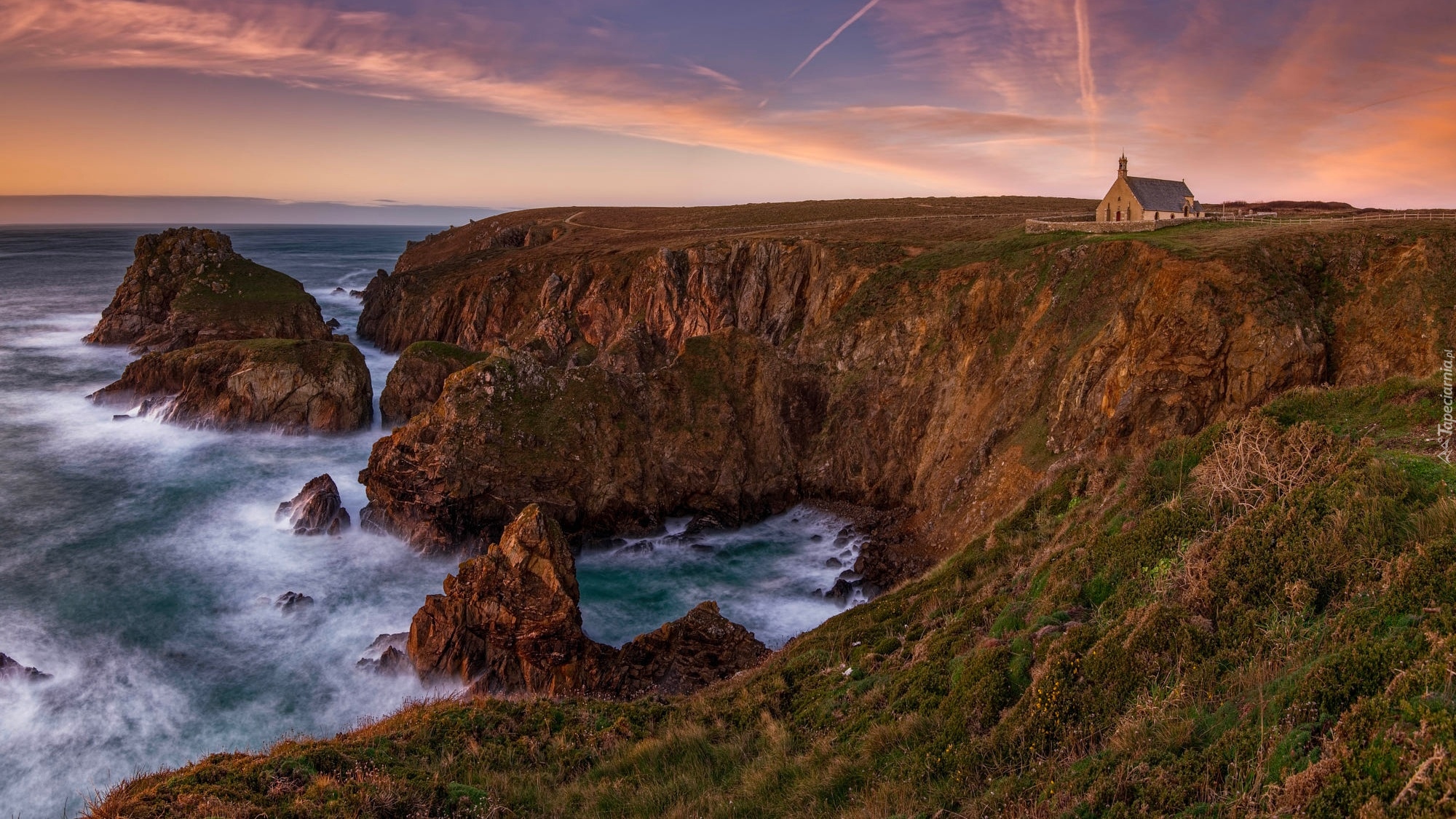 Edytor tapety: Kościół i przybrzeżne skały w Finistere
