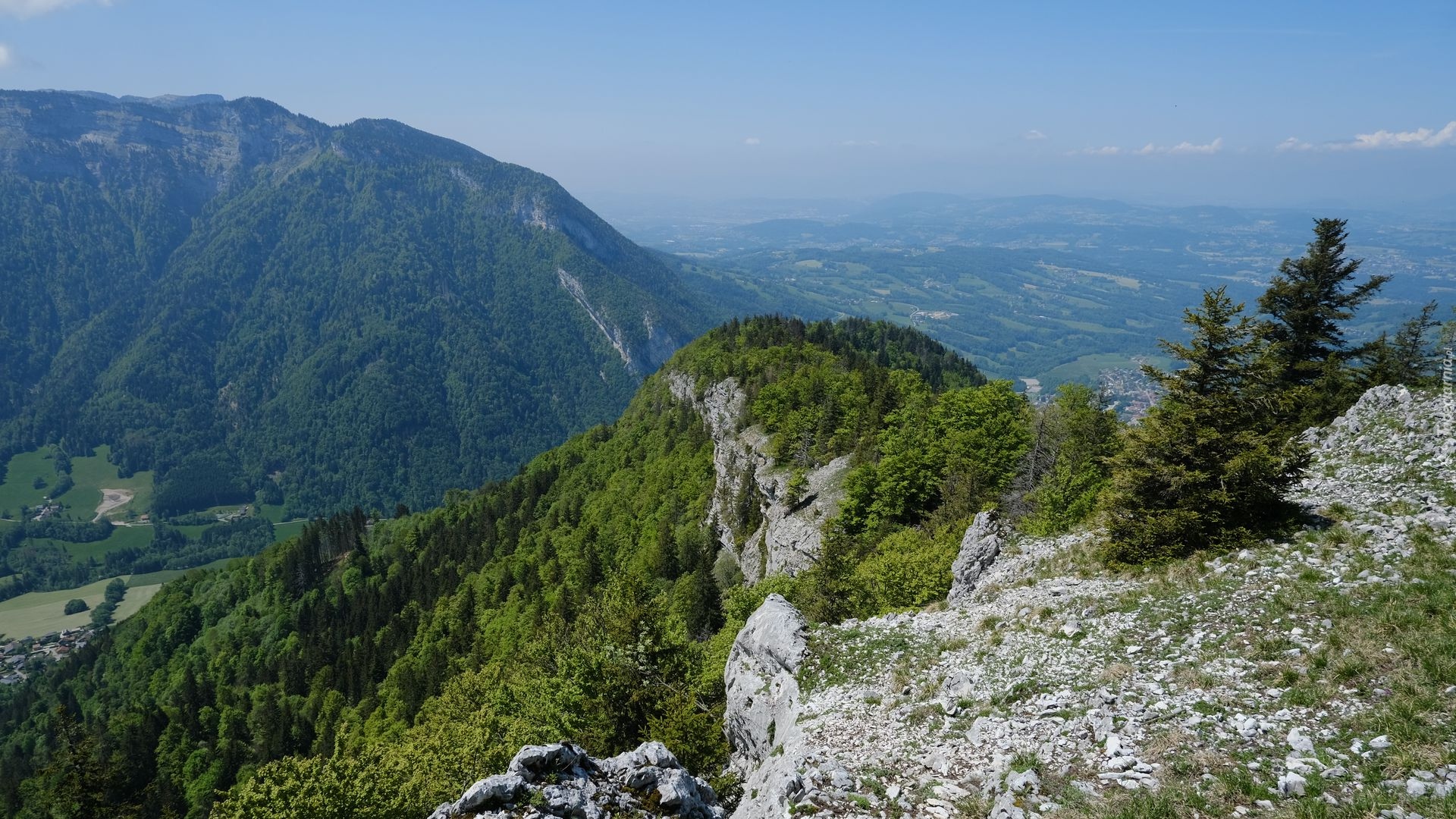 Edytor tapety: Drzewa na skałach i zalesione góry
