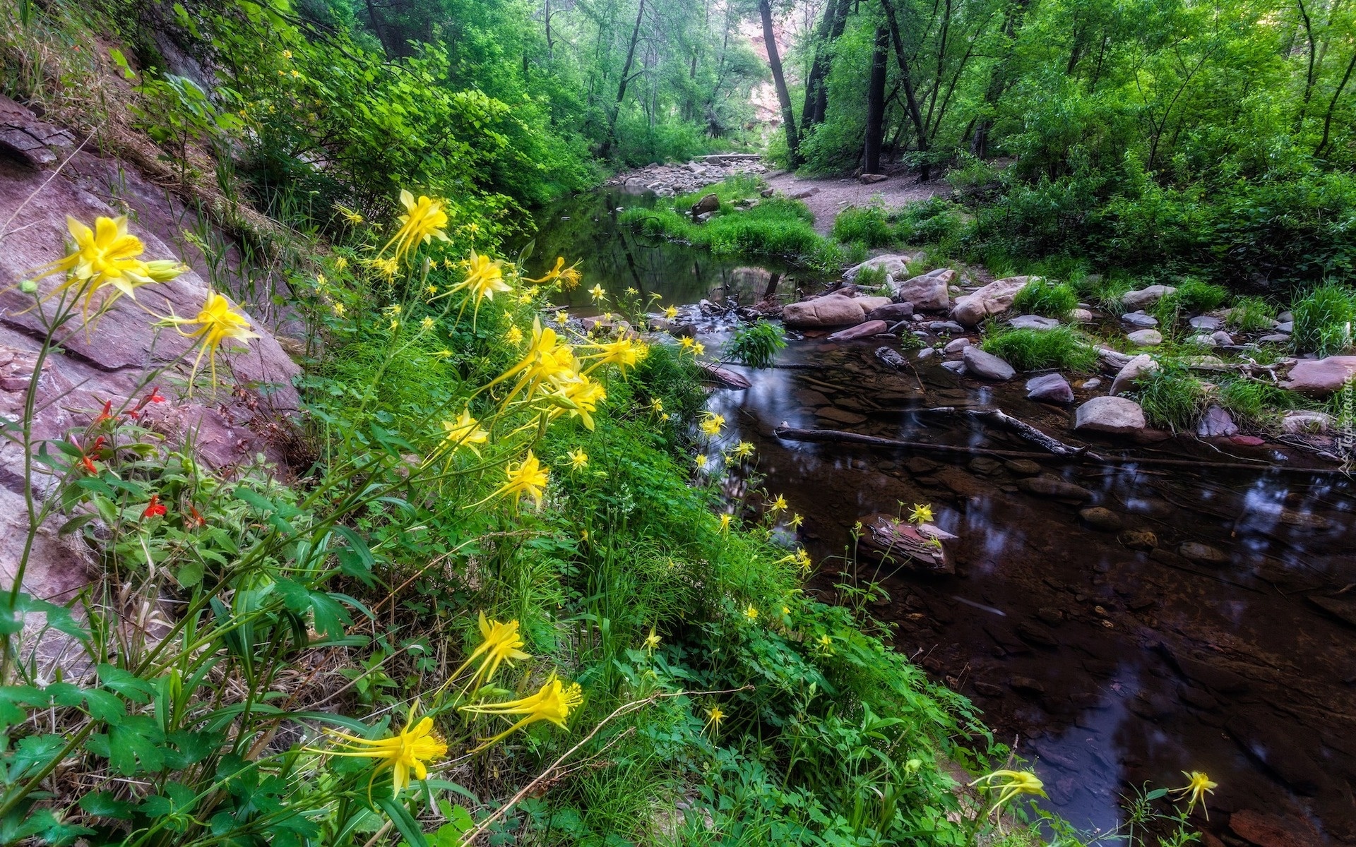 Edytor tapety: Żółte orliki nad rzeką Oak Creek