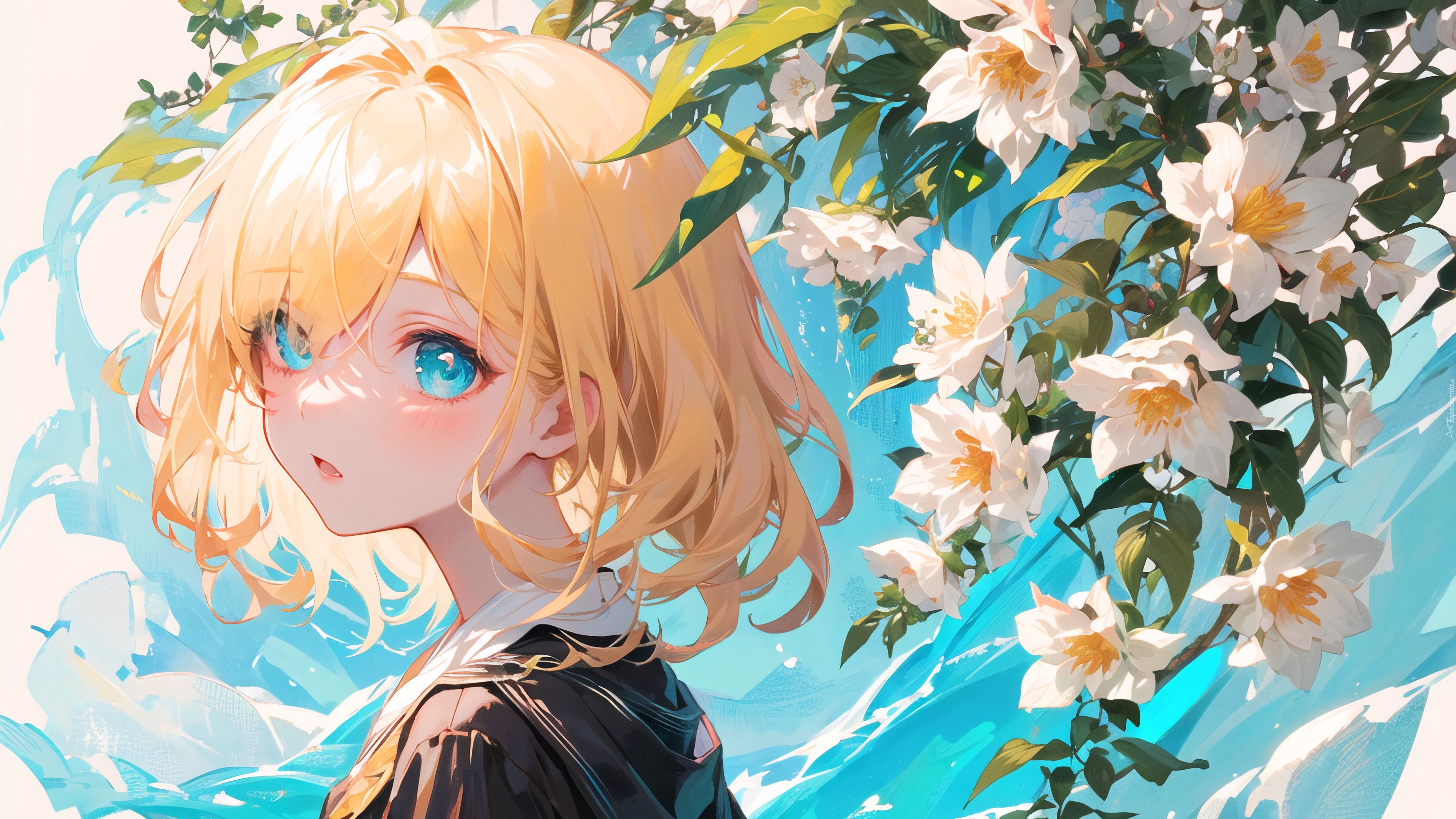 Edytor tapety: Niebieskooka dziewczyna przy kwiatach w anime