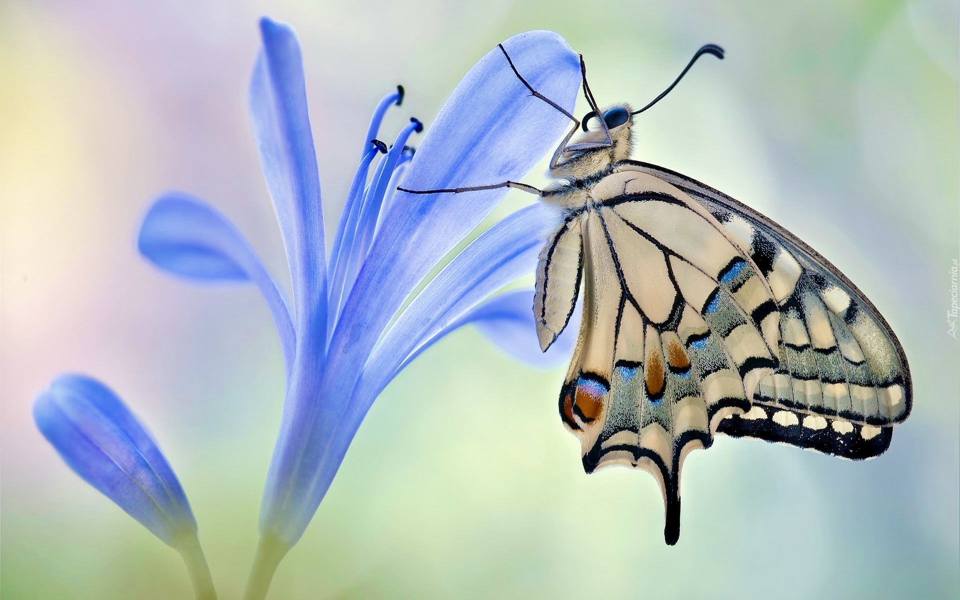 Edytor tapety: Paź królowej na niebieskim kwiatku