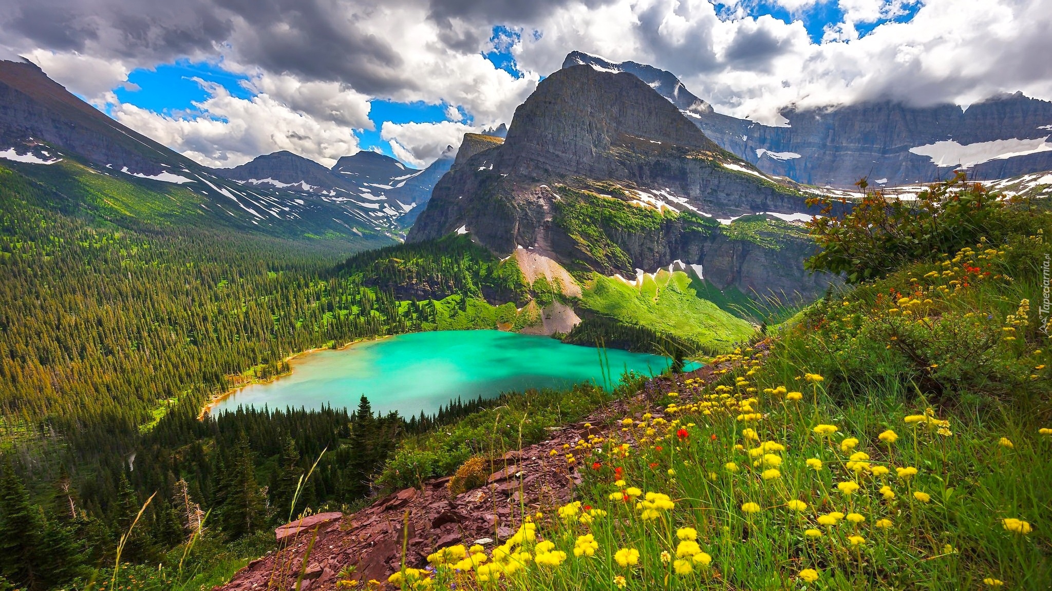 Edytor tapety: Chmury nad jeziorem Grinnell w Parku Narodowym Glacier