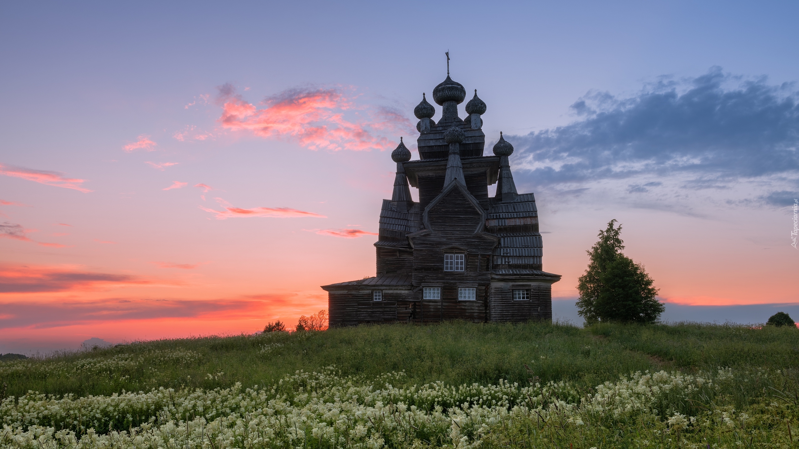 Edytor tapety: Cerkiew i drzewo na wzgórzu
