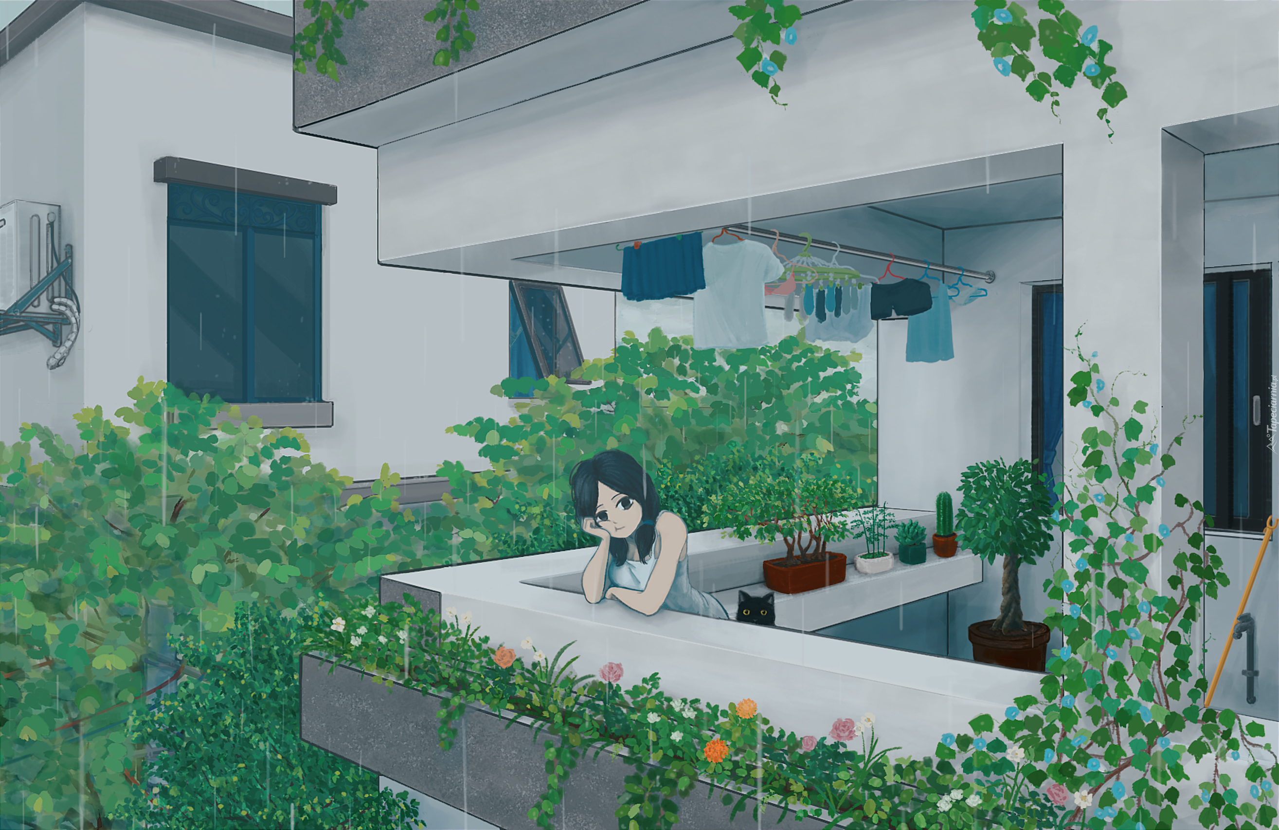 Edytor tapety: Dziewczyna i kot na balkonie w anime