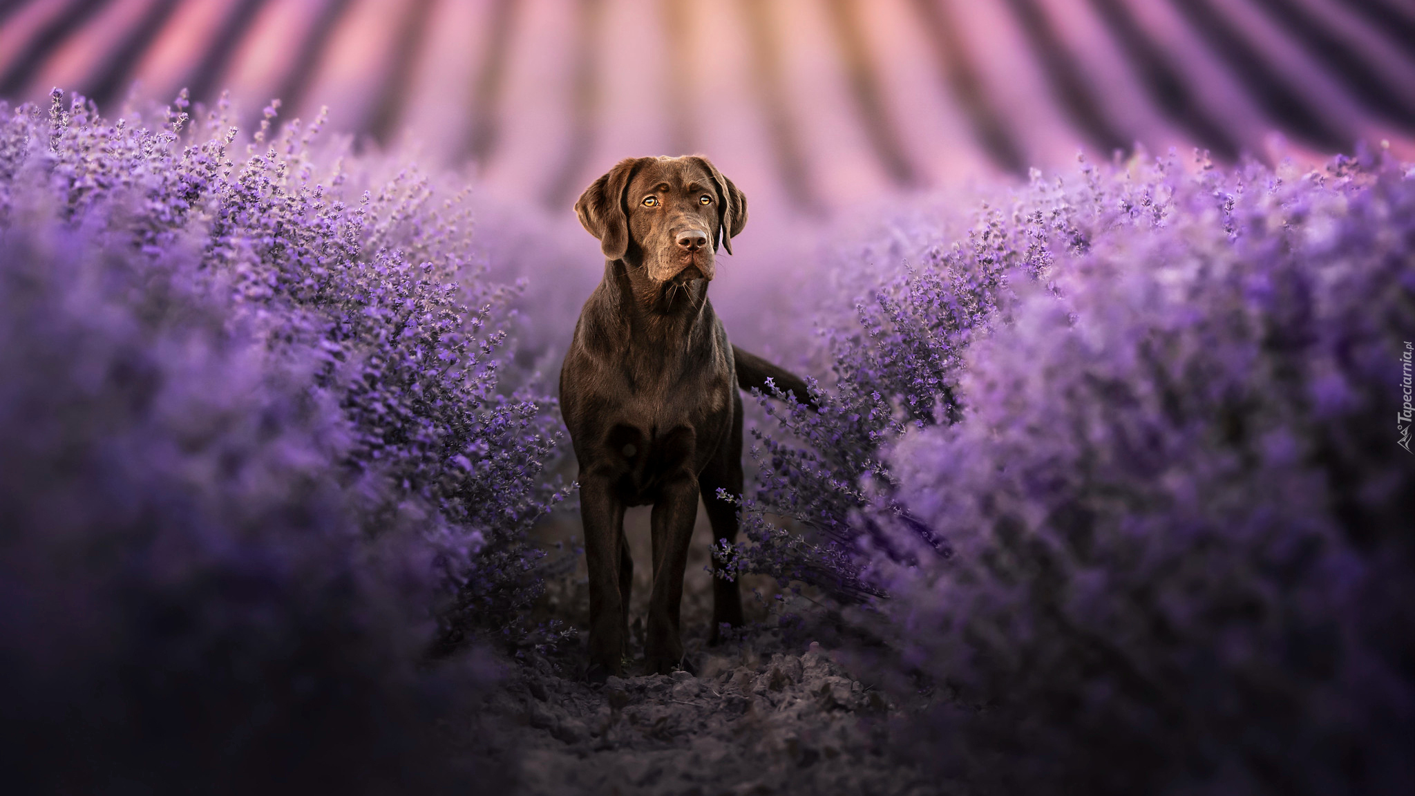 Edytor tapety: Labrador retriever wśród lawendy