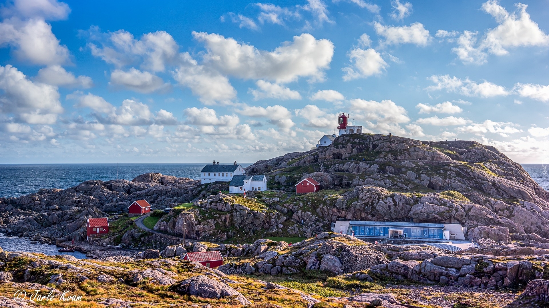 Edytor tapety: Domy i latarnia morska na skałach