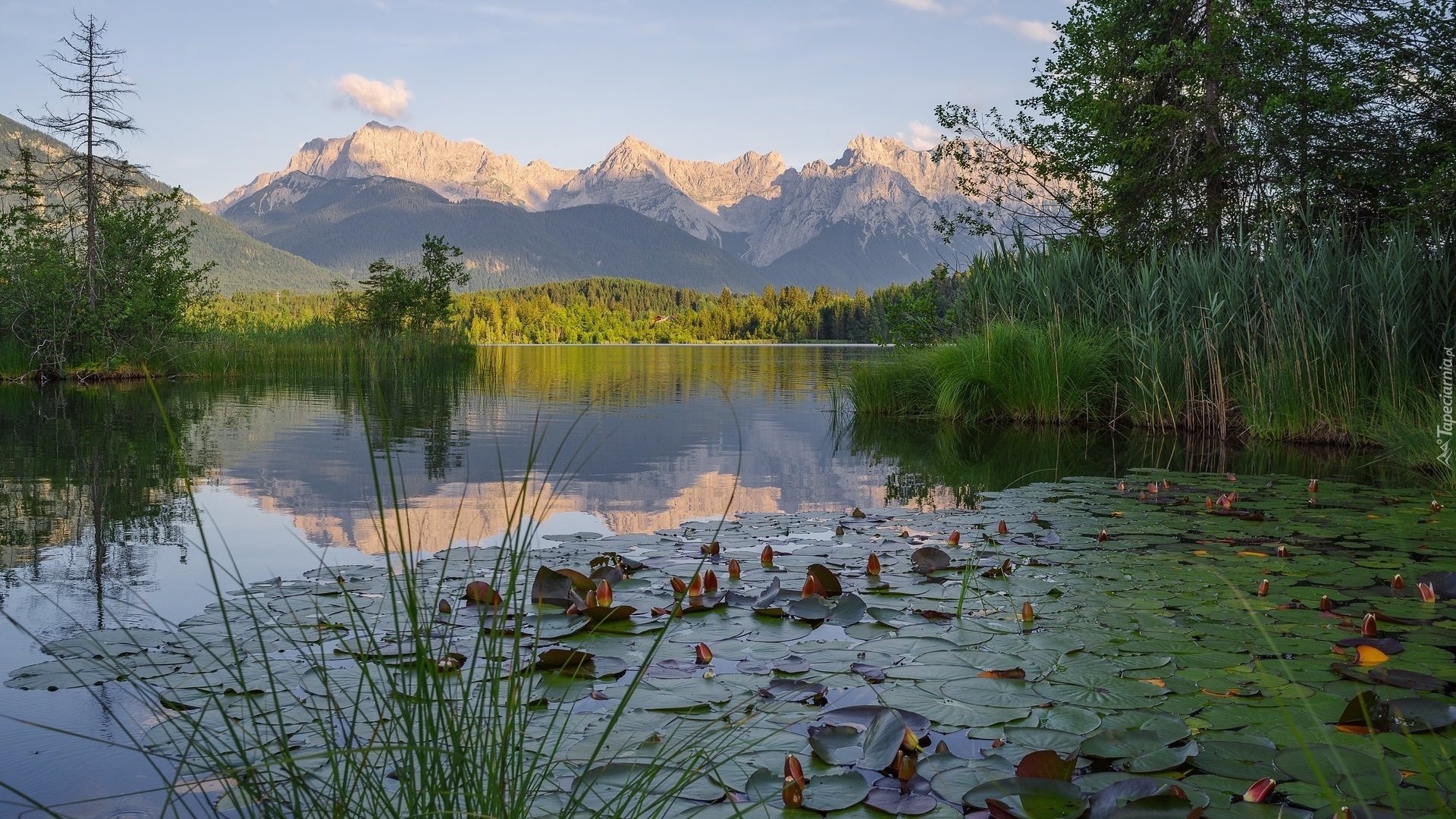 Edytor tapety: Szuwary i lilie wodne w jeziorze