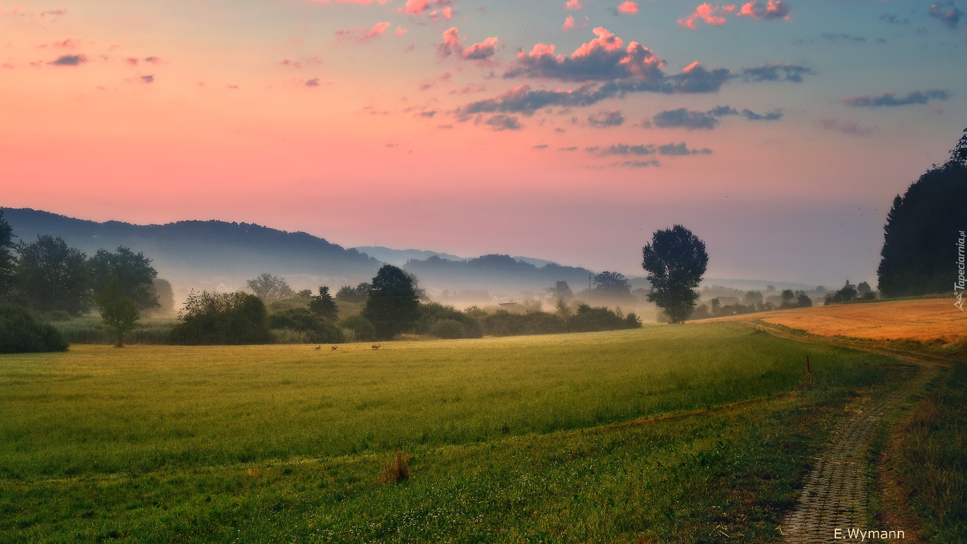 Edytor tapety: Zamglone góry i pola