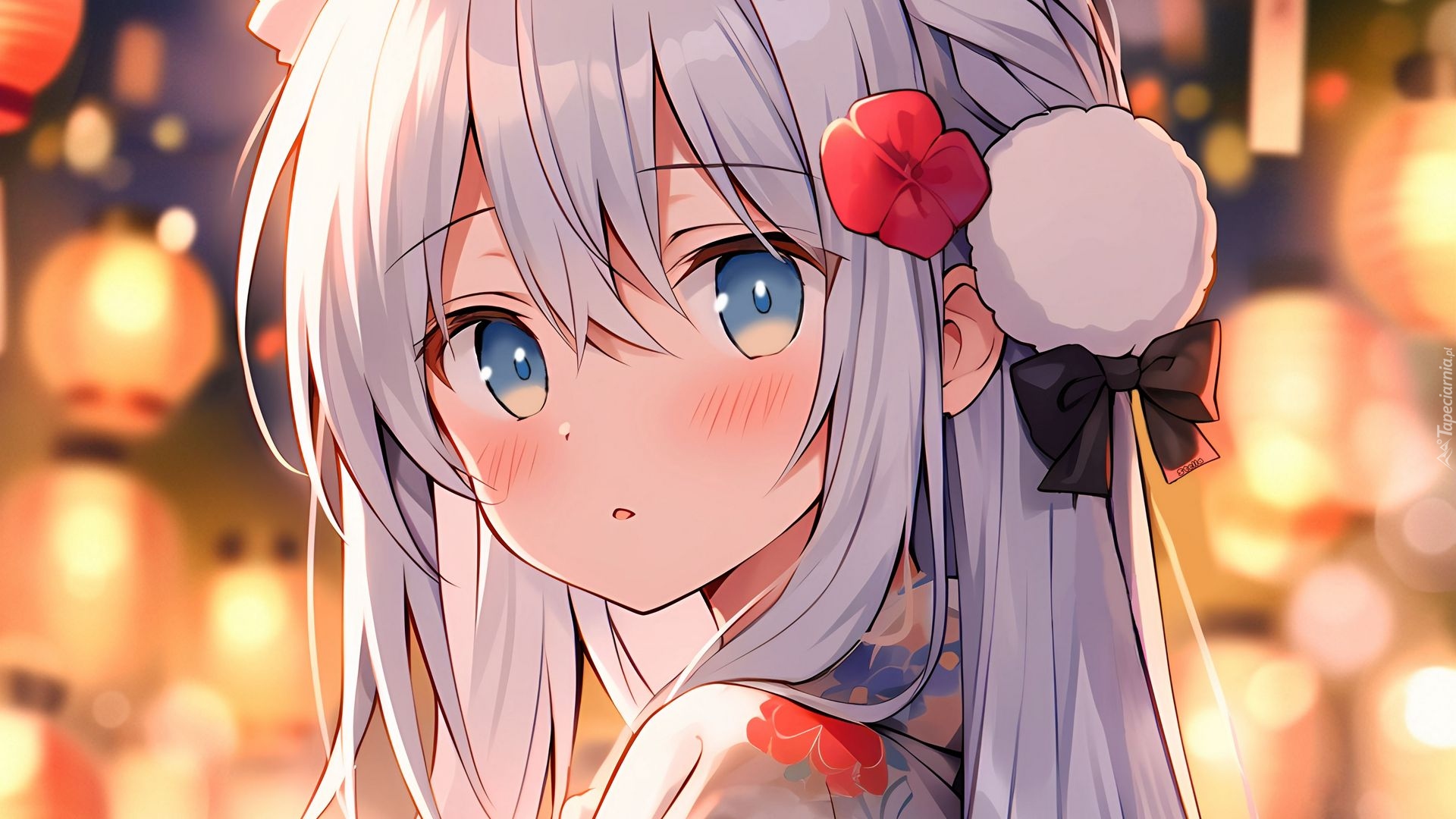 Edytor tapety: Dziewczyna z kwiatem we włosach w anime