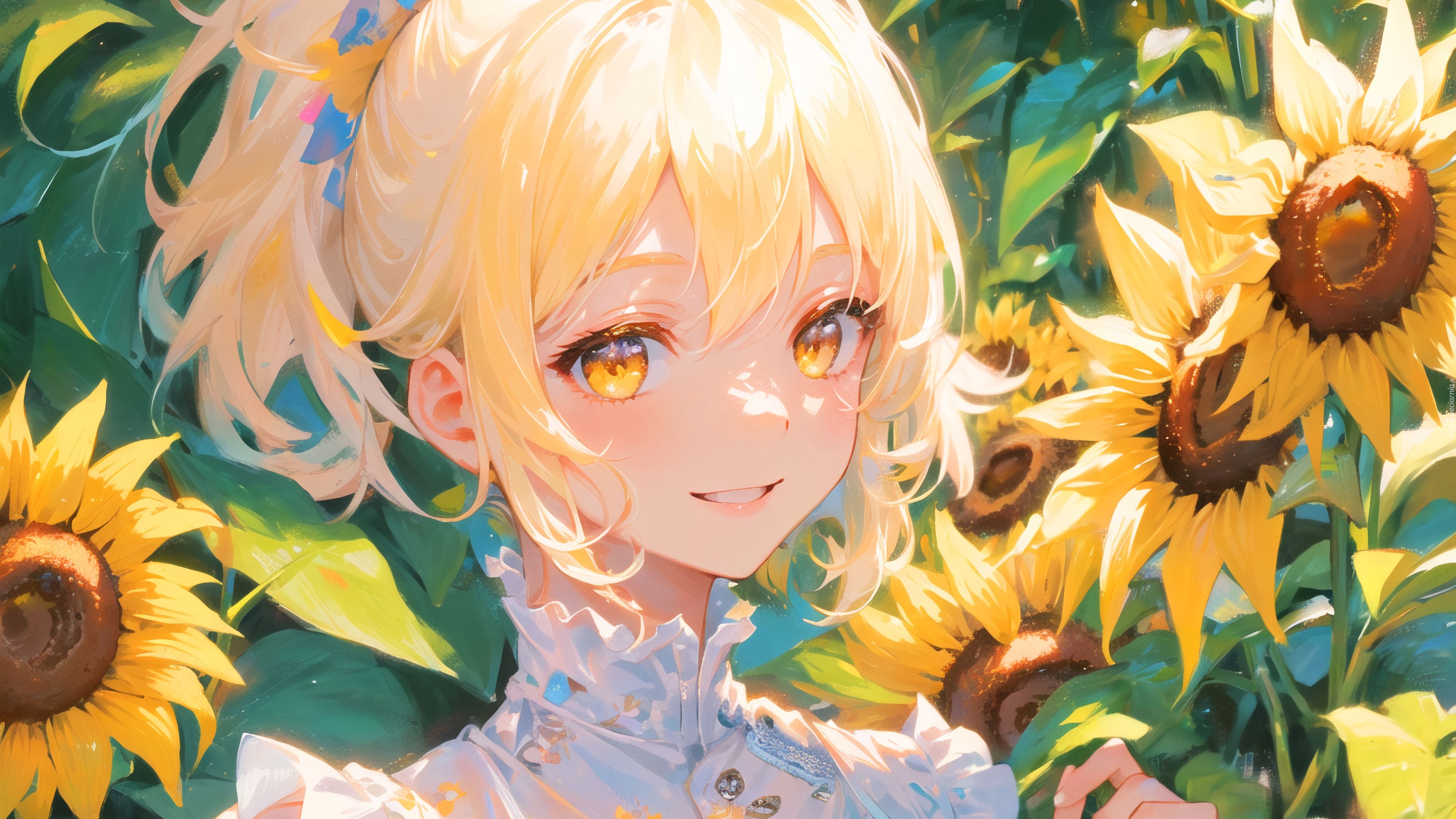 Edytor tapety: Dziewczyna i słoneczniki w anime